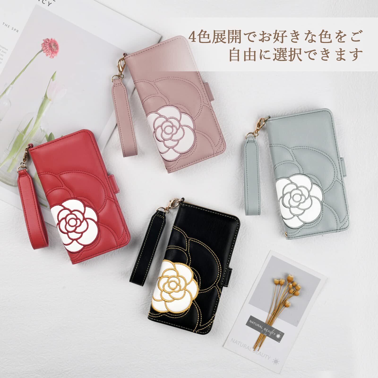 ❀ 【ケース 手帳型製品外観】高級PUレザーケース、高品質の合成皮で、長時間使っても、手に汗が出てもケースは変なにおいが出てきません。刺繍 花柄、スマホシェルは椿柄と安定した色を採用し、素材は丈夫で手触りも良く、上品な気分を味わえます。本革より耐久性に優れ、清潔もより便利です。