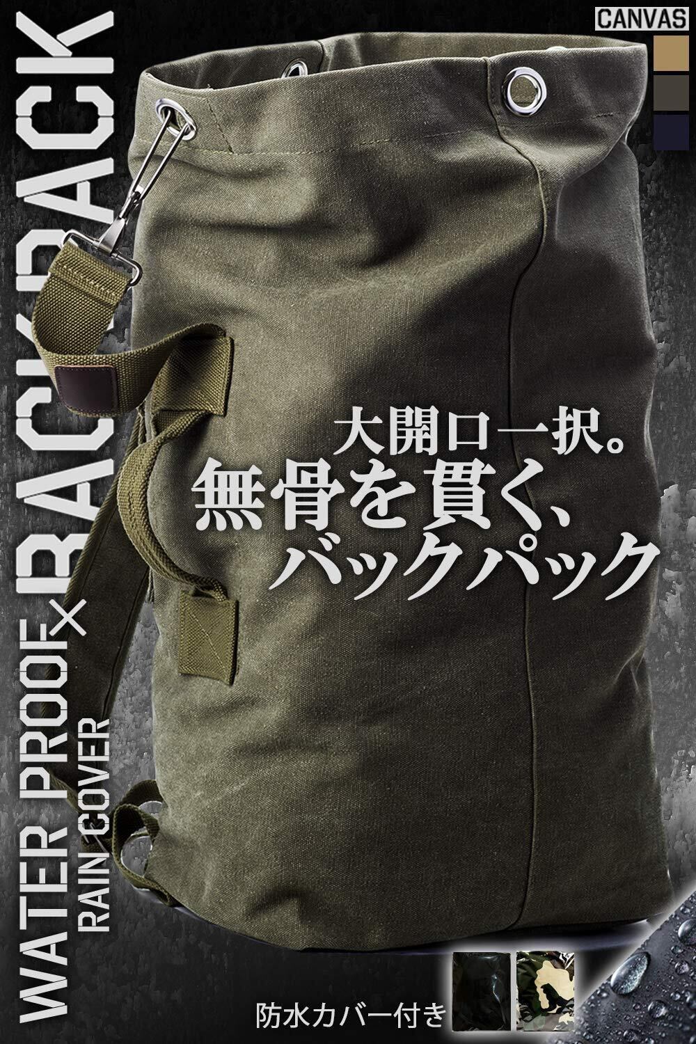 [KIRIRU] ドカッと入る メンズ リュック 帆布 [ 防水 レインカバー 付属/大開口式 バックパック ]キャンバス シンプル 大容量 ミリタリー アウトドア [ 20L 30L グリーン ベージュ ダークネイビー 3色 ]