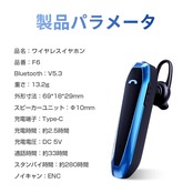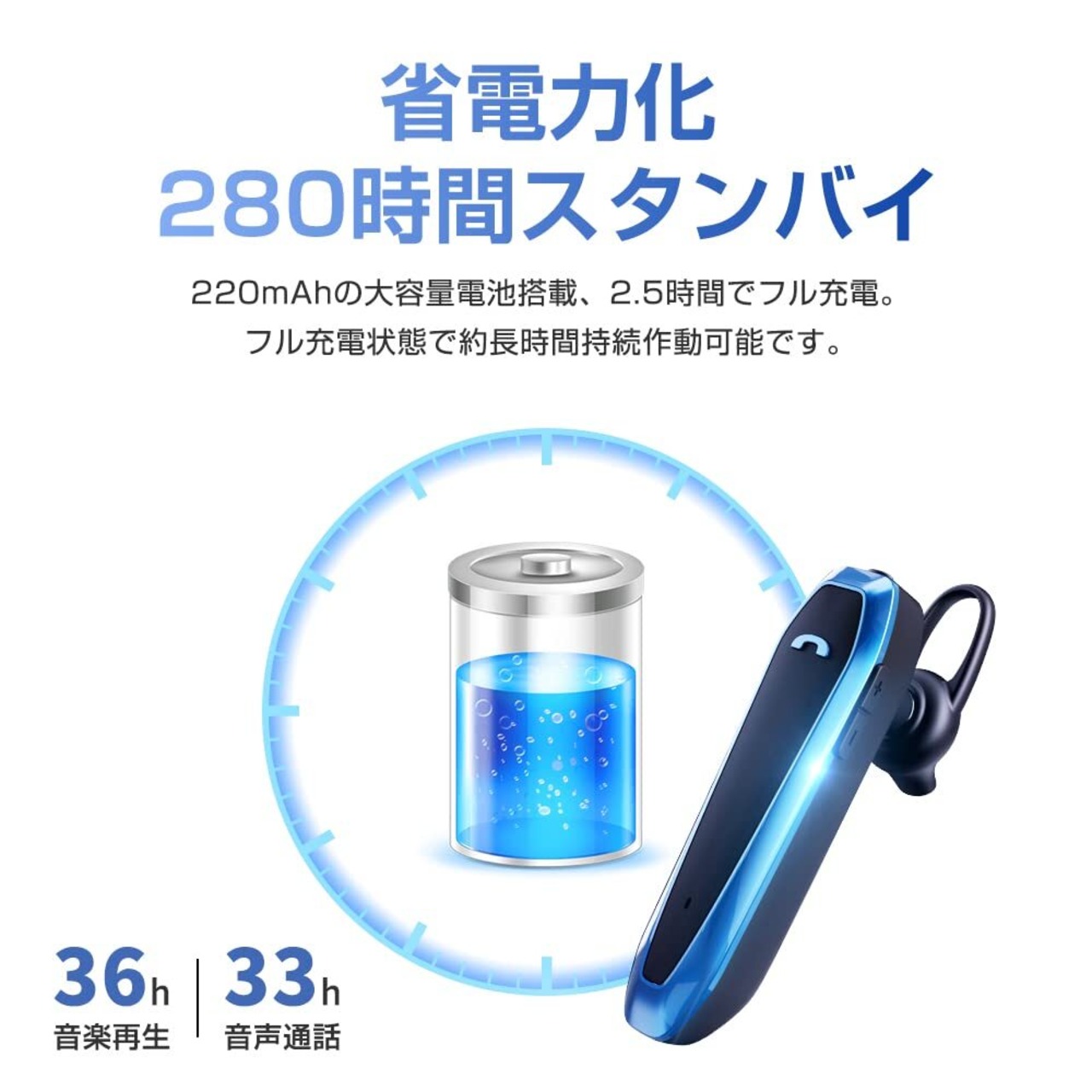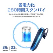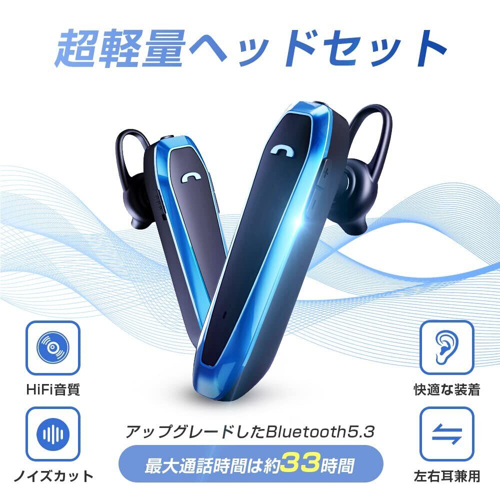 Bluetooth 5.3 ヘッドセット ワイヤレスイヤホン 片耳 ブルートゥースヘッドセット 耳掛け式 片耳イヤホン 左右耳兼用 マイク内蔵 ENCノイズキャンセリング 最大33時間連続通話 クリア通話 防水防滴 快適装着 2台同時接続可能 在宅勤務/運転/ビジネスチャット/zoom会議などに適用 iPhone&Android対応(ブルー)