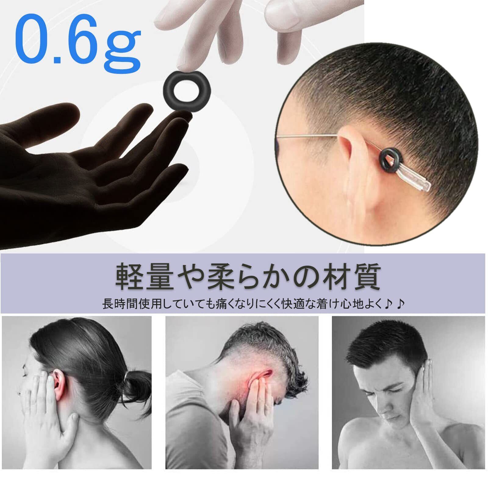 [柔軟度が高くで快適な着け心地]メガネリングはやわらかいシリコン製だから、肌触りがよく優しい付け心地です。長時間使用していても痛くなりにくく快適な着け心地を体験していただけます。感じがしないまでに軽いが、メガネは確かに耳にしっかりと掛かっています。ゴム製より髪の毛の引っ掛かりも軽減します。柔軟性が非常に高く、強く引っ張り伸ばしてもひび割れの心配もありませんので使用寿命が長いです。また軽量でコンパクトなリングのデザインで、着用時の違和感もありません。柔軟性に優れており、幅広いメガネに対応しております。