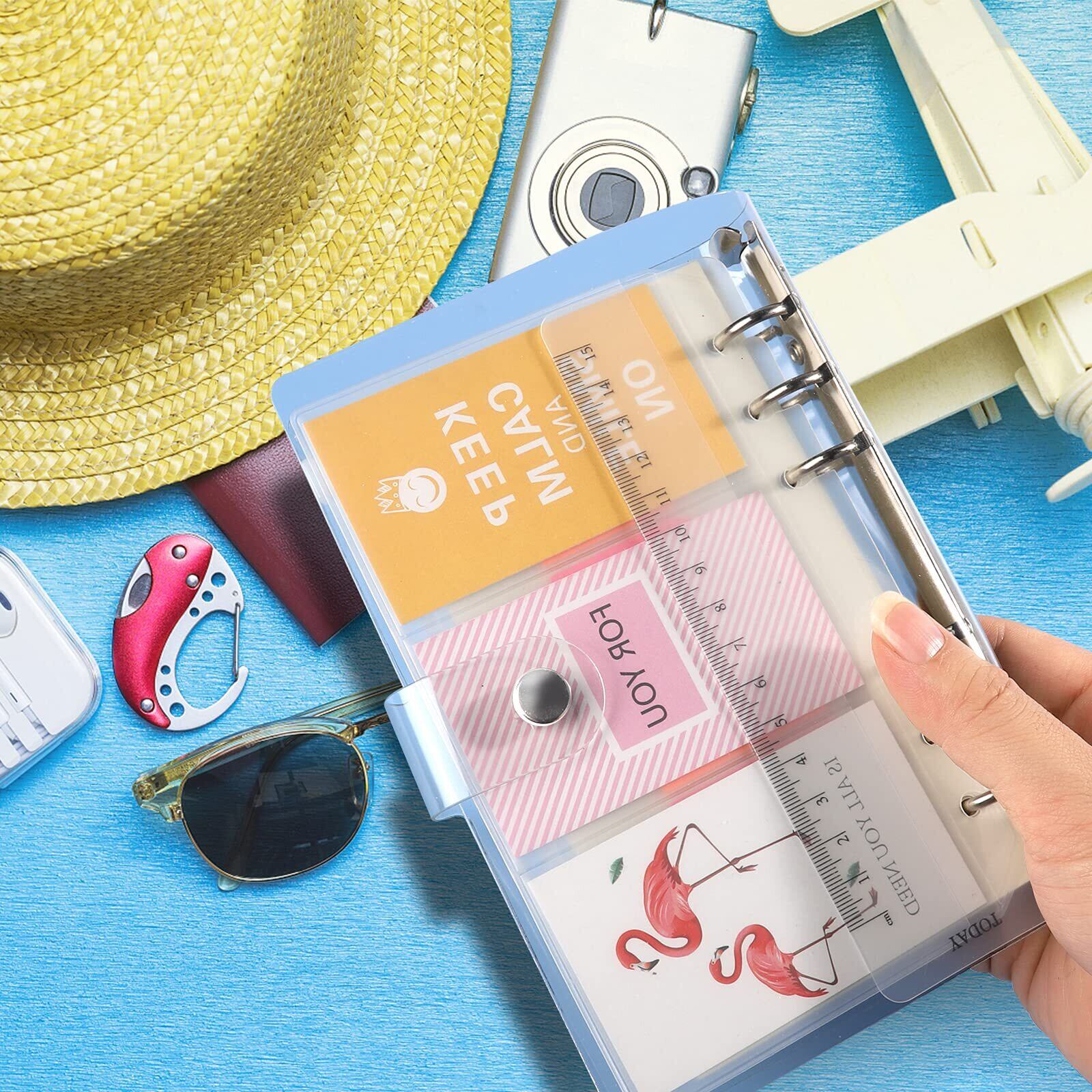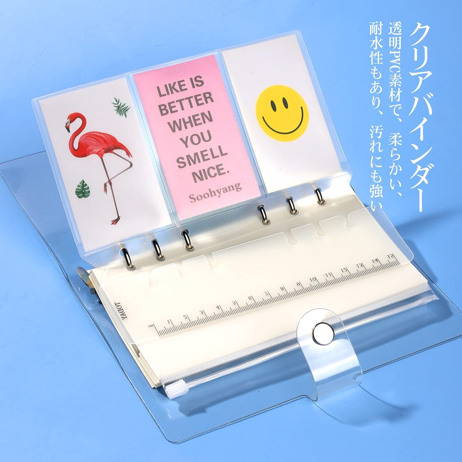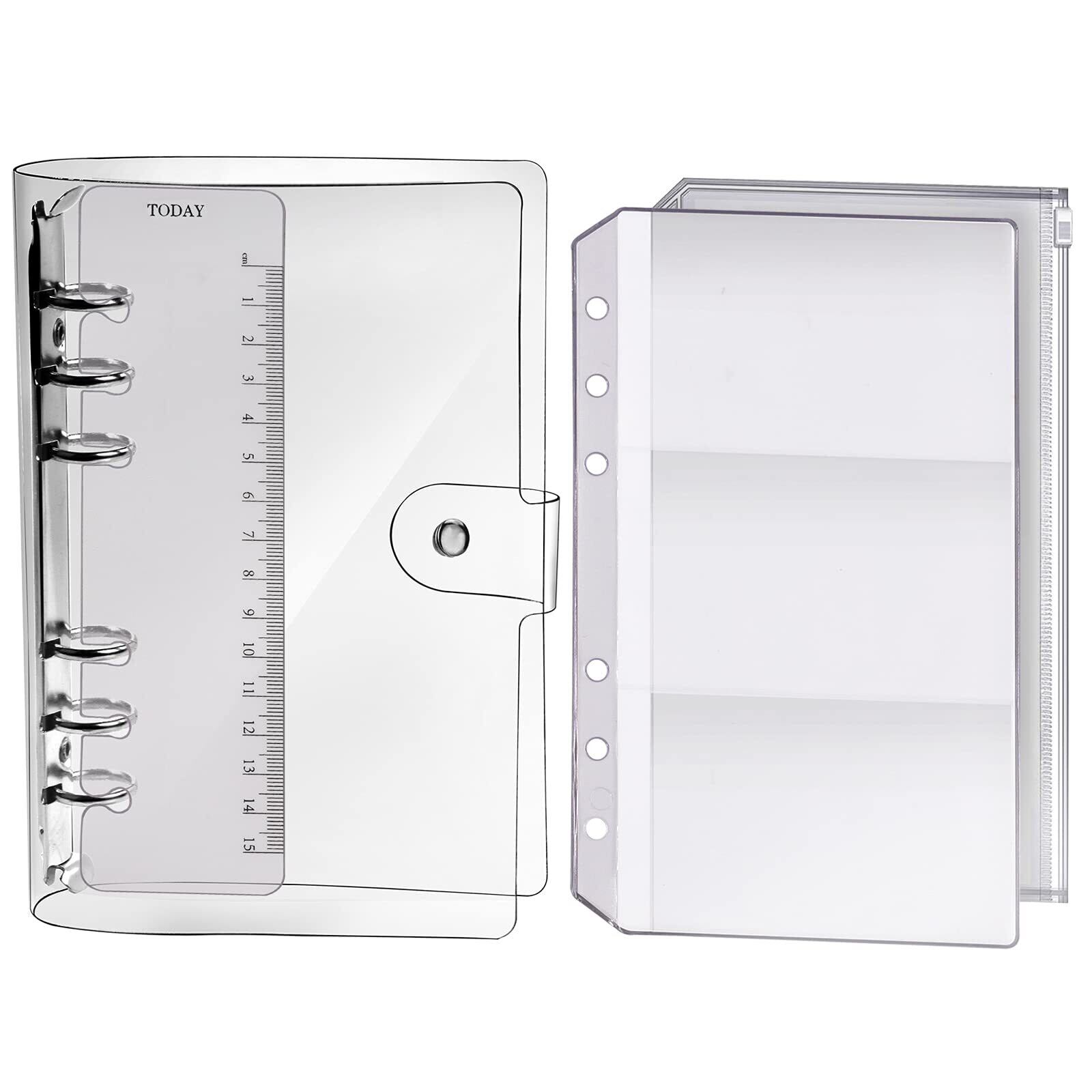 システム手帳 透明バインダー Leobro バイブルサイズ手帳 PVCクリア素材 柔らかい ボダン付き A6クリアポケット 2枚付き 定規付き ノート