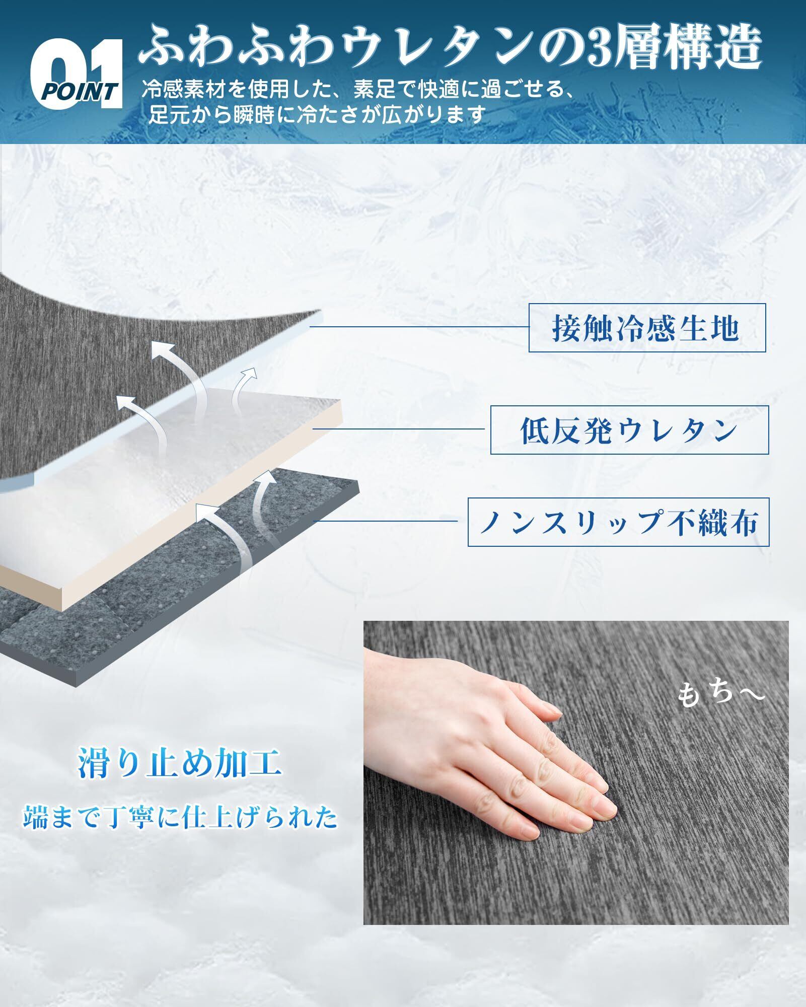 【接触冷感】冷感素材を使った、触れるたびひんやり体感、思わず寝転がってくつろぎたくなります。足元から瞬時に冷たさが広がります。霜降りデザインで、見た目も涼しいです。