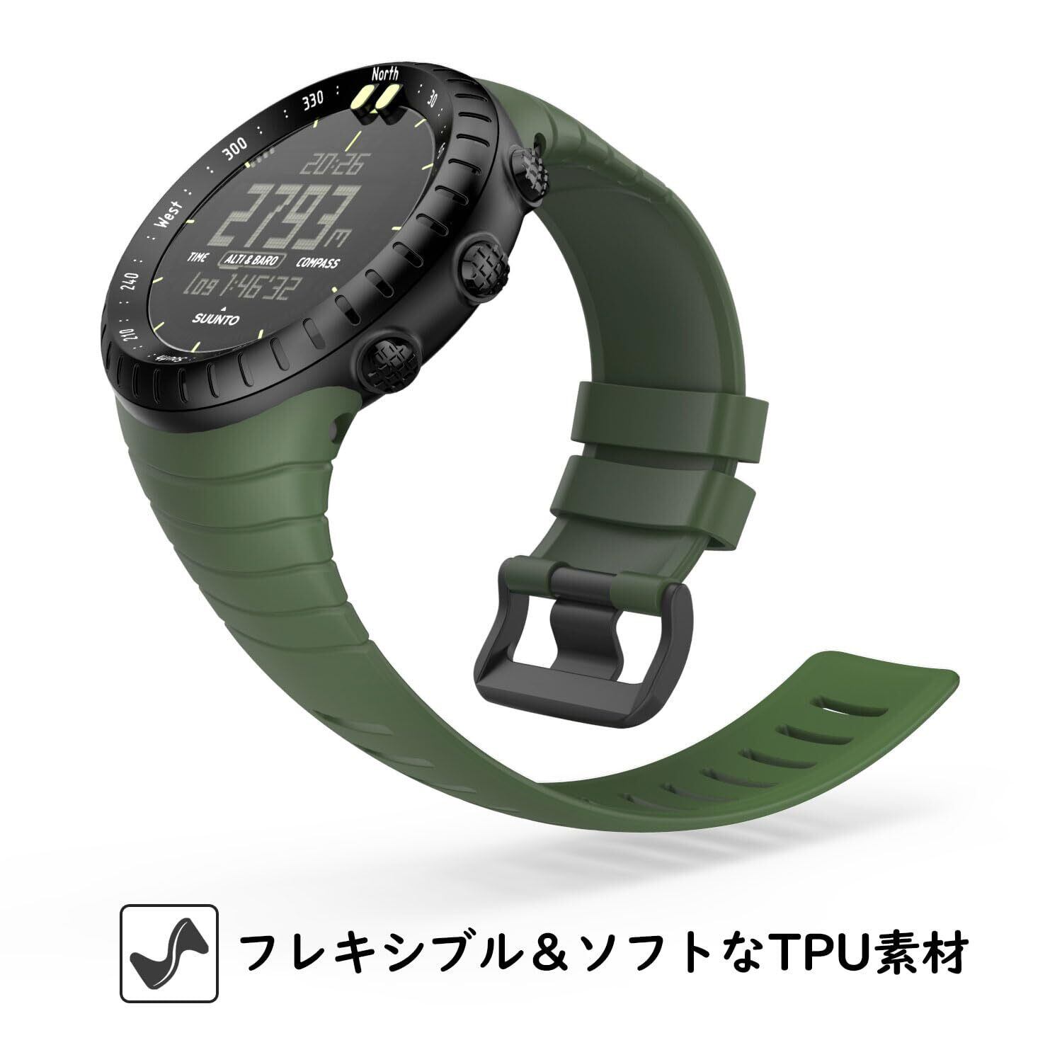 [ATiC] Suunto Core バンド SUUNTO(スント) Coreコア専用 ソフト TPU製 ストラップ/バンド 交換ベルト 腕サイズ:5.51"-9.06" (140mm-230mm) Army Green | yankees