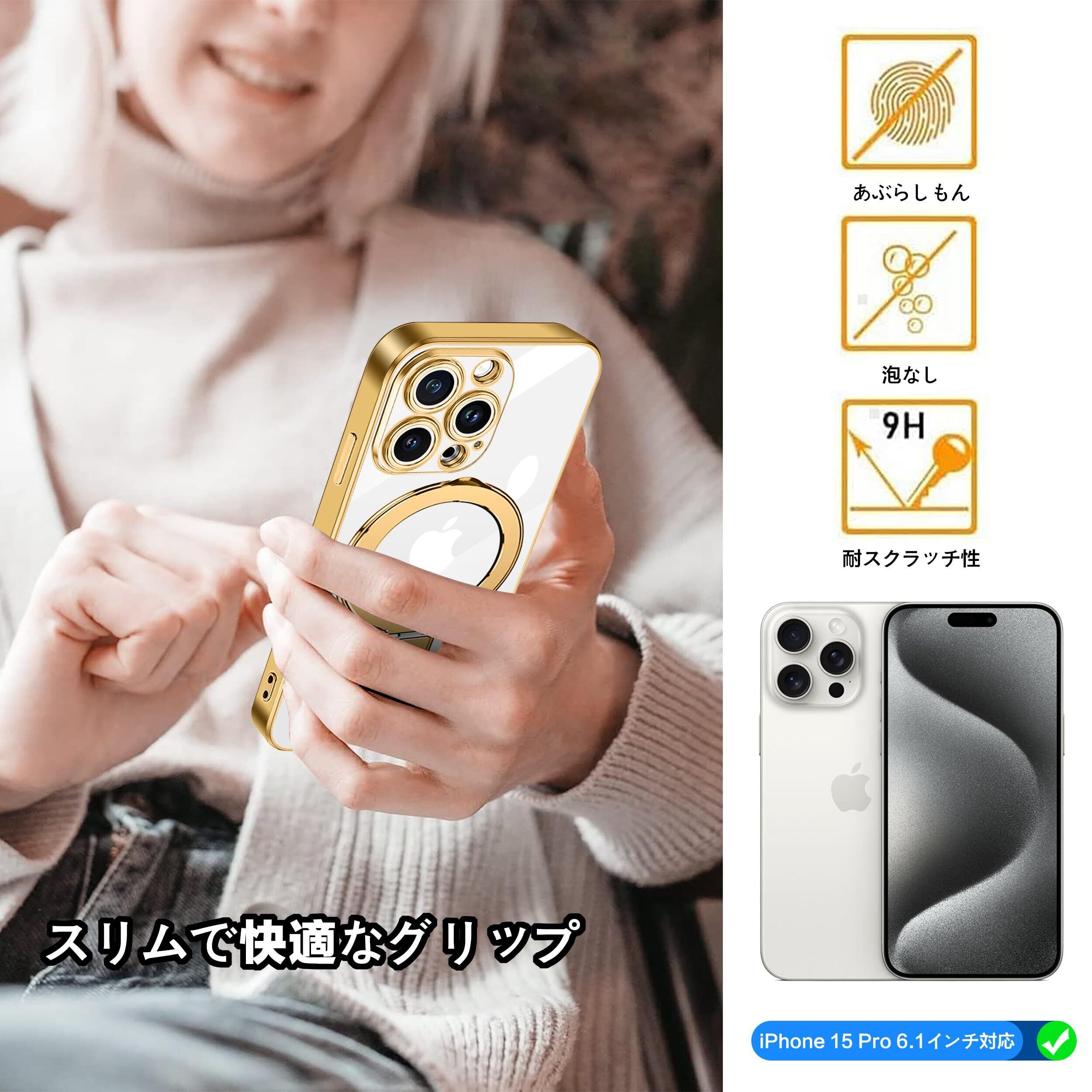 iPhone 15 Pro Max ケース クリア Magsafe対応 マグネット搭載 リング付き ストラップホール付き スタンド機能 縦横両対応 TPU 衝撃吸収 滑り止め 落下防止 隠しスタンド ワイヤレス充電 アイフォン 15 プロ マックス 透明 カバー(クリア)
