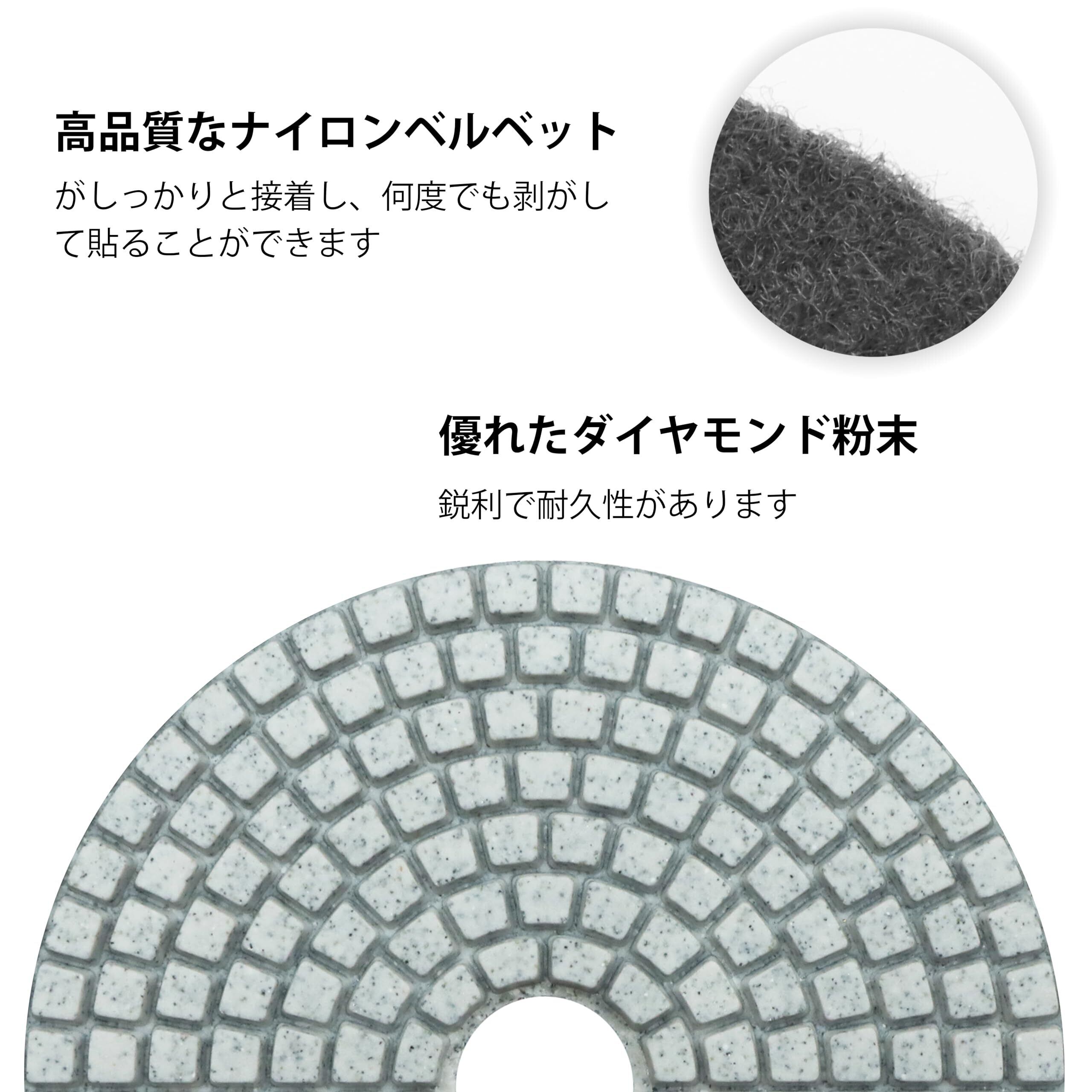 【プロ仕様の研磨キット】高品質のダイヤモンドと樹脂で作られたこれらのパッドは、高速研削、優れた柔軟性、耐摩耗性、長期にわたる耐久性を備えています。