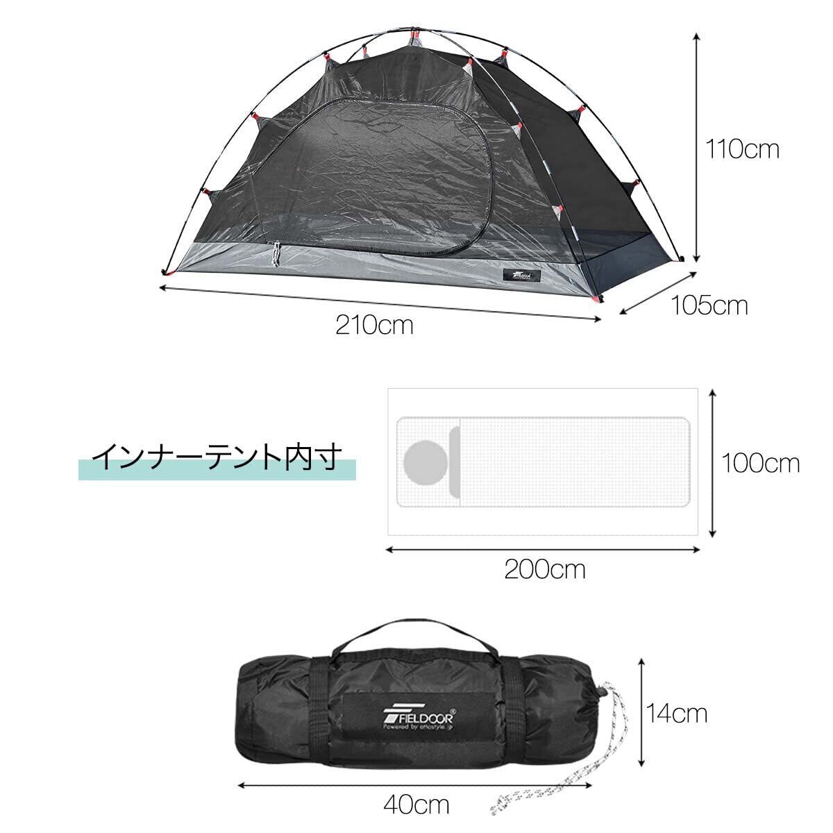 FIELDOOR カンガルーテント100 インナーテント コンパクト 軽量 収納 大型テント シェルター トンネルテント 2ルームテント キャンプ アウトドア 屋内 ソロ