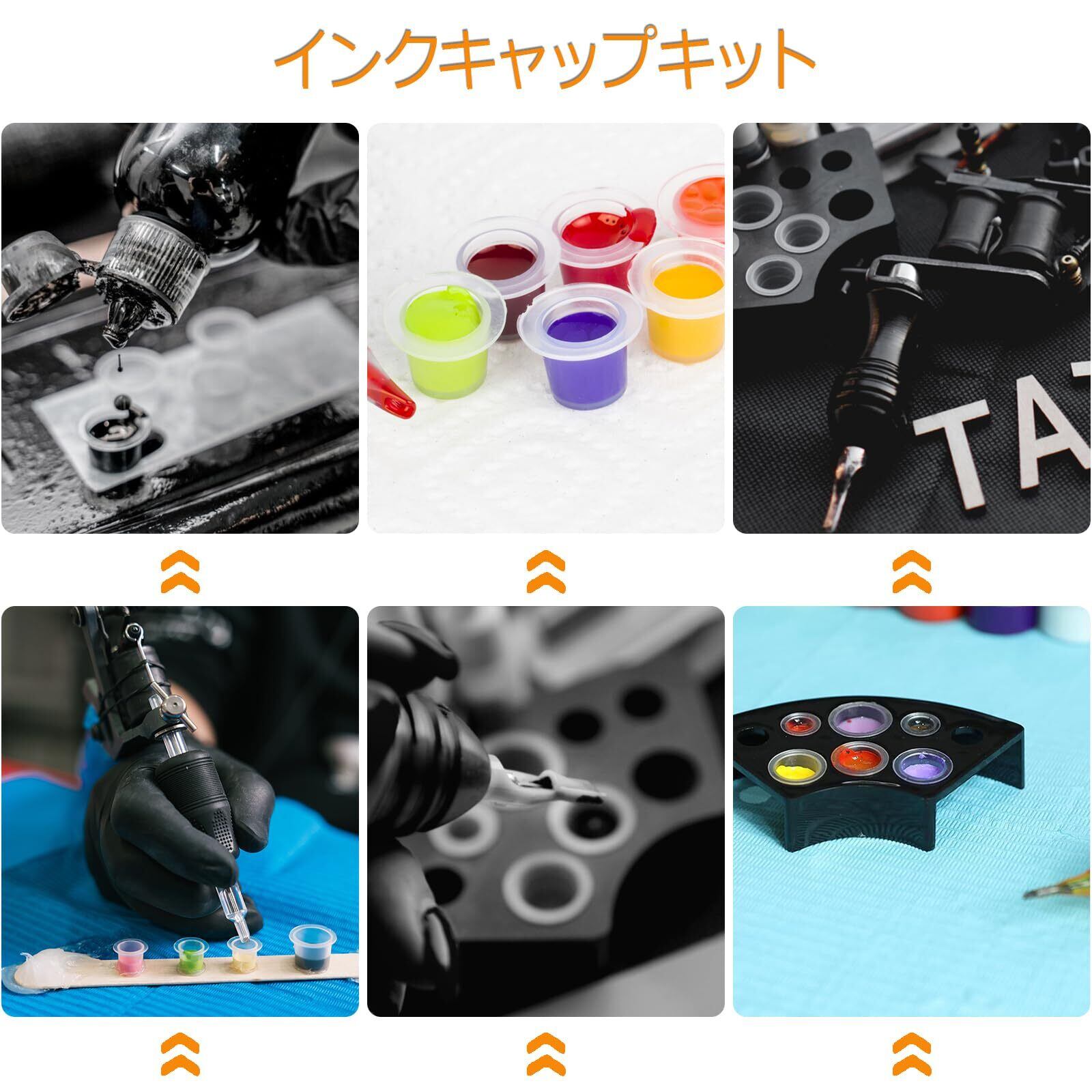 タトゥーインクキャップキット - 3pcsブラックタトゥーカップホルダーと300pcsタトゥーインクキャップがセットになっています。インクカップの直径は大15mm、中11mm、小8mm、各サイズ100個入り。タトゥー用インクキャップはタトゥーインクの混合を容易にし、あなたの様々なニーズを満たします。