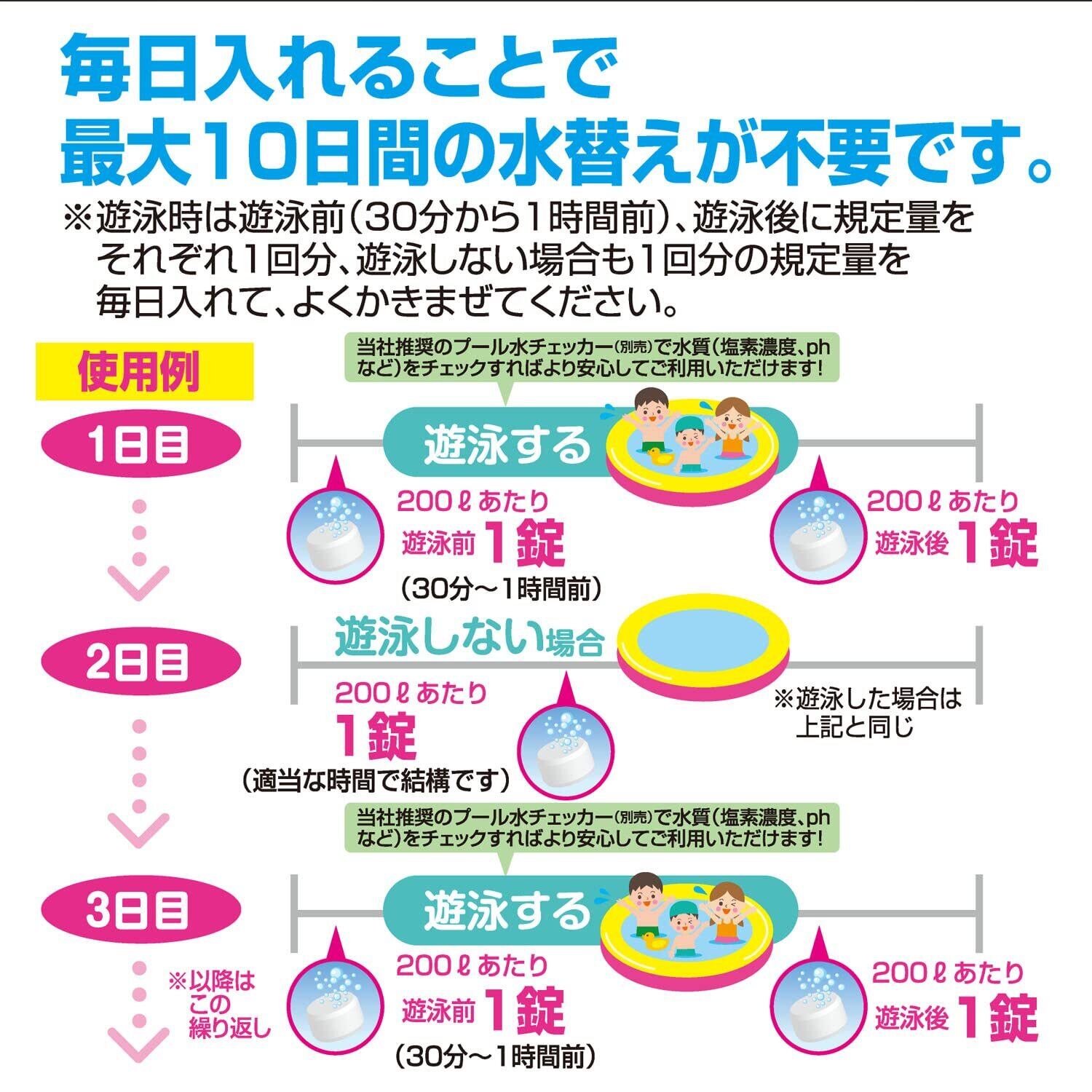 錠剤は完全溶解しますが、利用前にはプール水をかき混ぜて下さい。