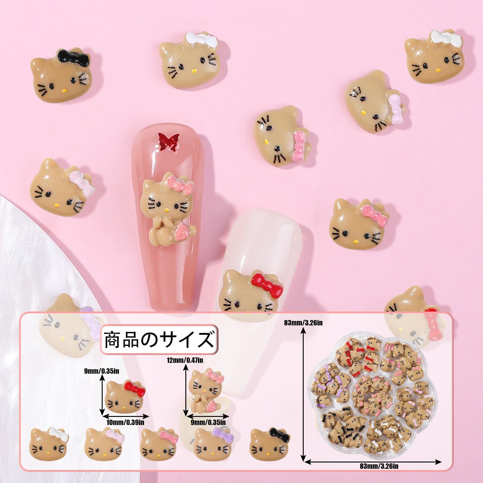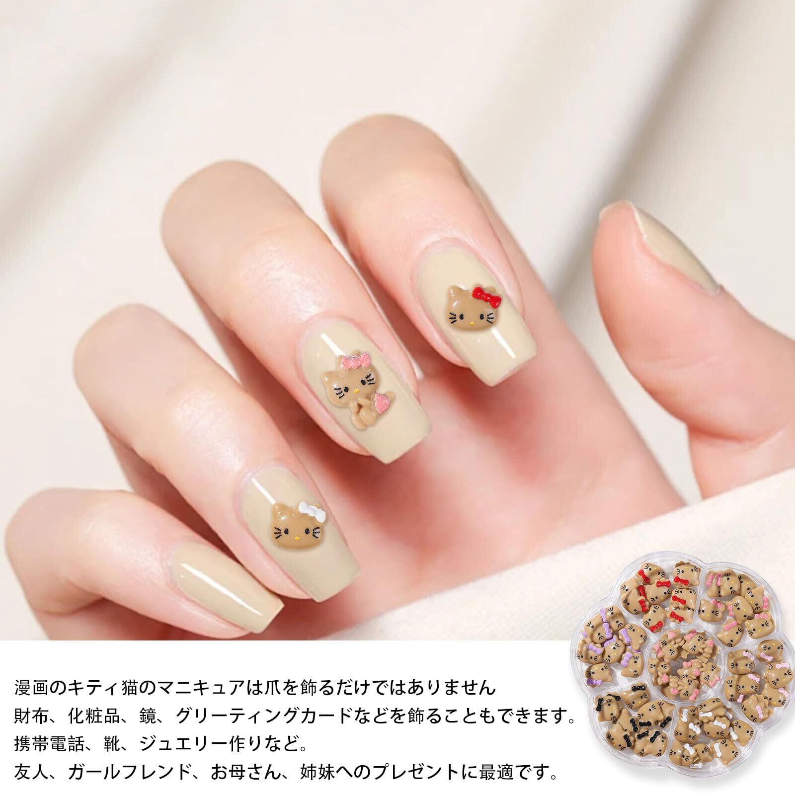 【ネイルパーツ セット】キュートでオシャレなキティネイルパーツ。家庭用とプロのネイルサロンに適していて、ファッショントレンドの女性のネイルデザインにぴったりです。