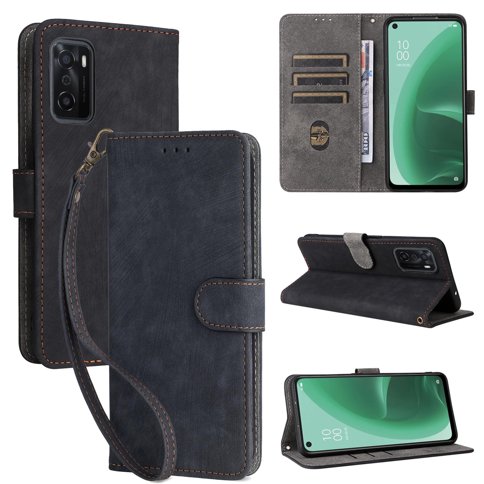 OPPO A55s 5G ケース 手帳型 カバー 財布型 高級PUレザー カード収納スタント機能/耐衝撃/耐摩擦/全面保護/薄型/マグネット開閉 防水 ノート型 人気 おしゃれ 男女兼用 OPPO A55s 5G ブラック | yankees