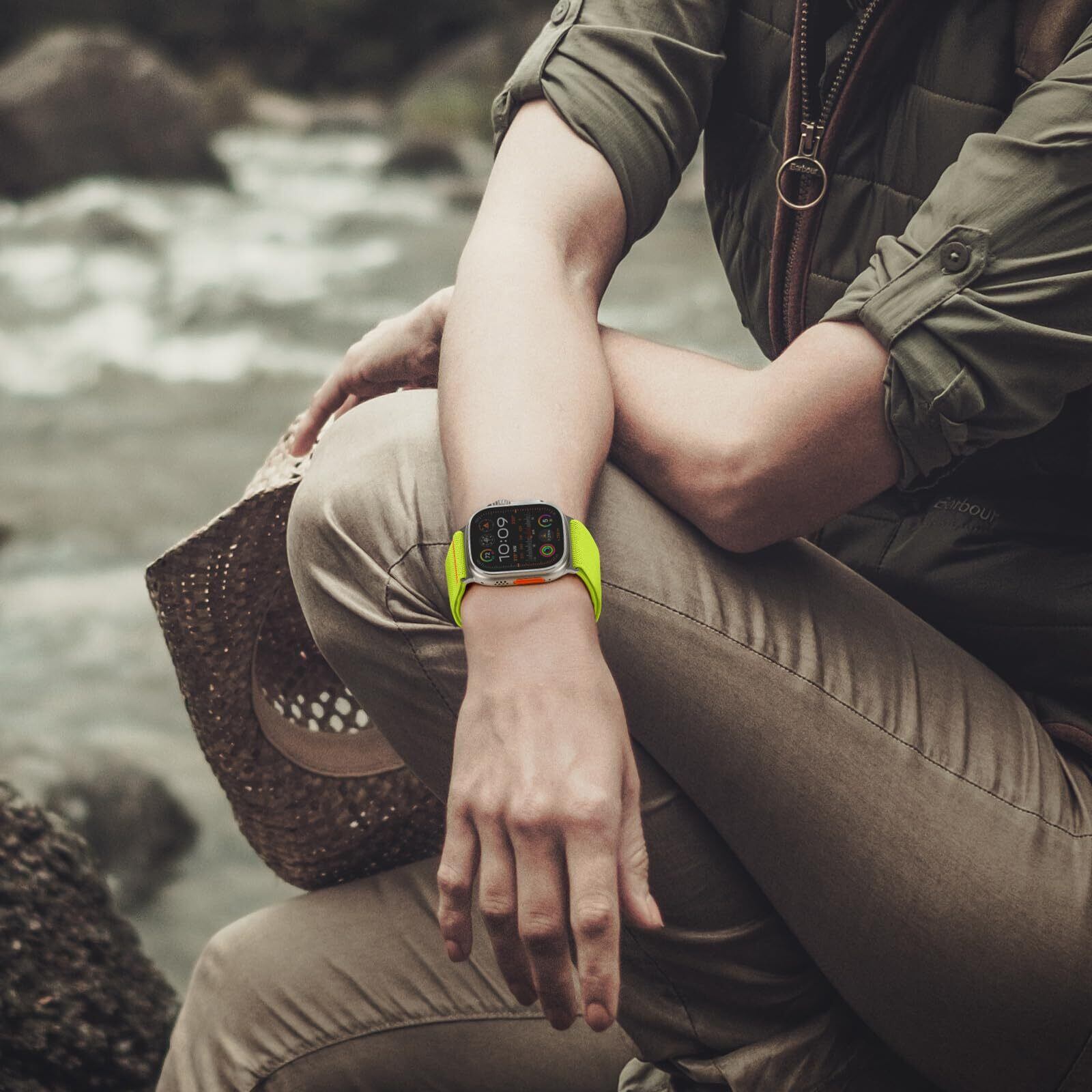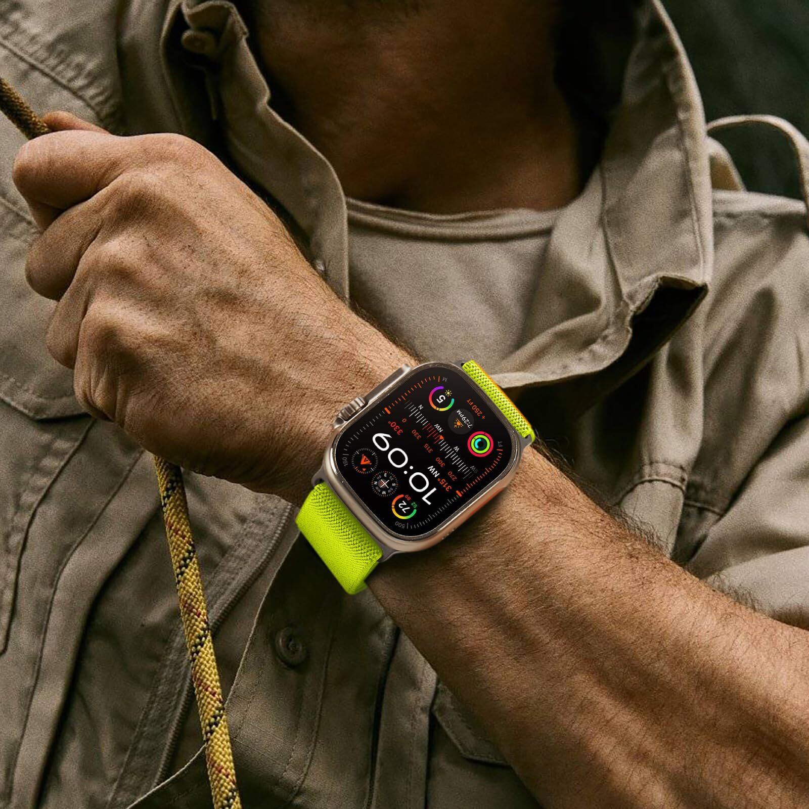 [Suitisbest] コンパチブル アップルウォッチ バンド ナイロン 41mm 40mm 38mm 42mm(Series 10) Apple Watch Ultra バンド スポーツ Apple Watch ベルト 通気 アルパインループ Series 10/9/8/7/SE/6/5/4/3/2/1 ウルトラ 運動 軽量 耐久性 防汗 男性 メンズ 蛍光グリーン