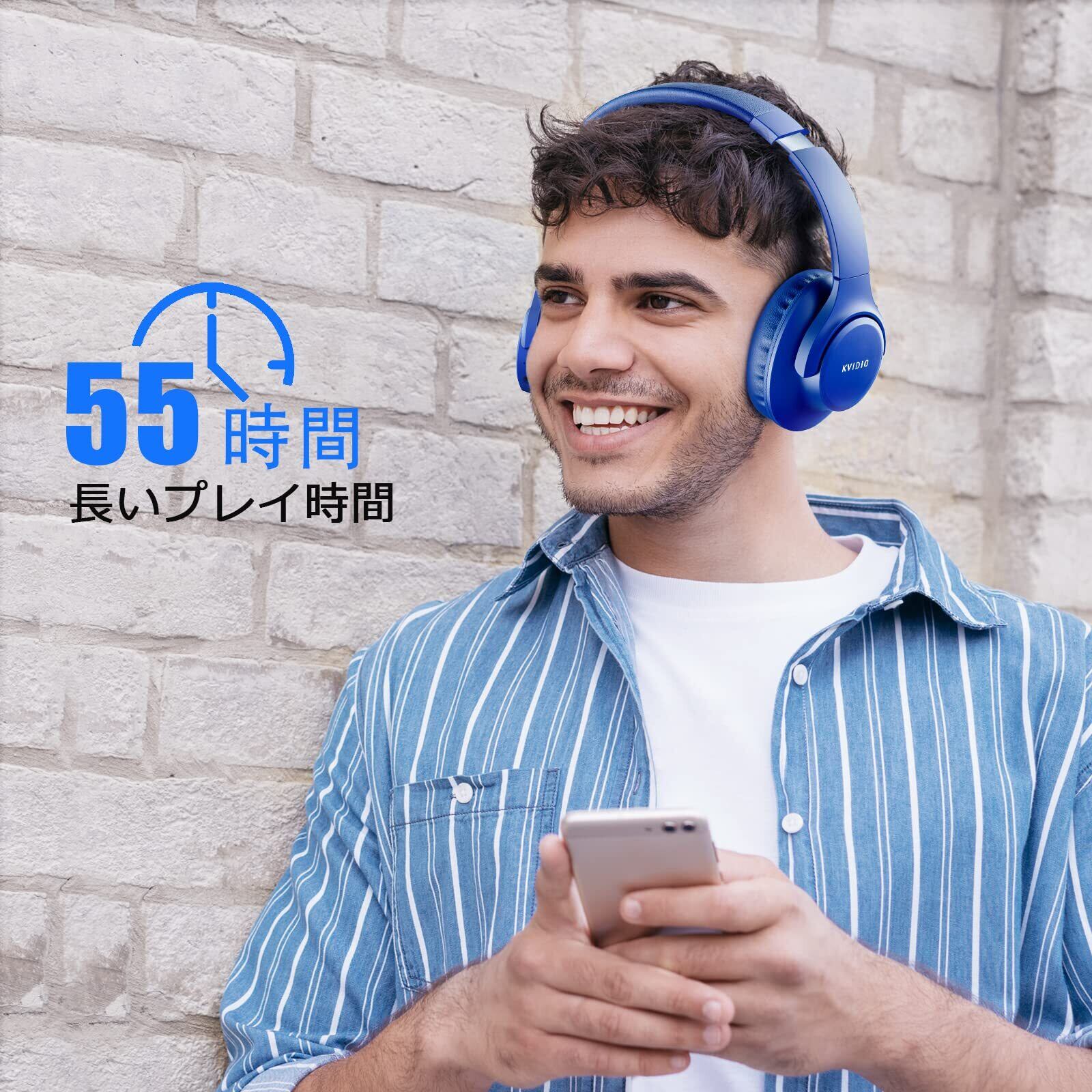 ワイヤレス ヘッドホン KVIDIO Bluetooth 5.0 55時間再生 ヘッドホン 40mm HD ドライバーユニット オーバーイヤーヘッドホン マイク内蔵 ヘッドホン 有線 無線 両用 遮音 密閉型 ハンズフリー通話可能 ブルートゥース ヘッドフォン ブラック (青) | yankees