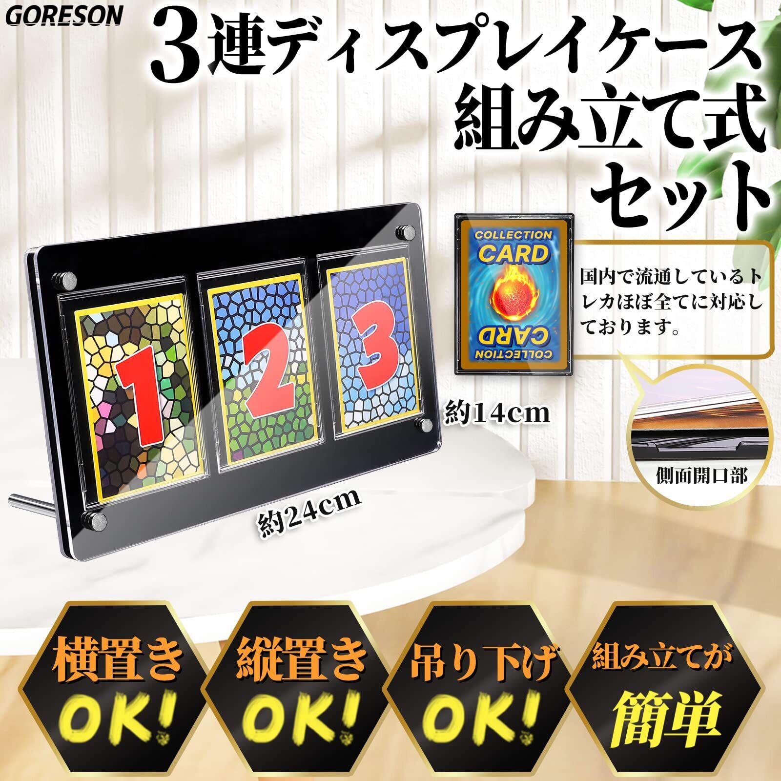 Goreson 3連ブラックディスプレイケース スクリューダウン カードスタンド カードローダー カードスタンド カードホルダー uvカット 台座付き ブラック ディスプレイスタンド(トレカケース コレクション 対応、遊戯王 ポケモンカード トレカ トレーディングカード対応)