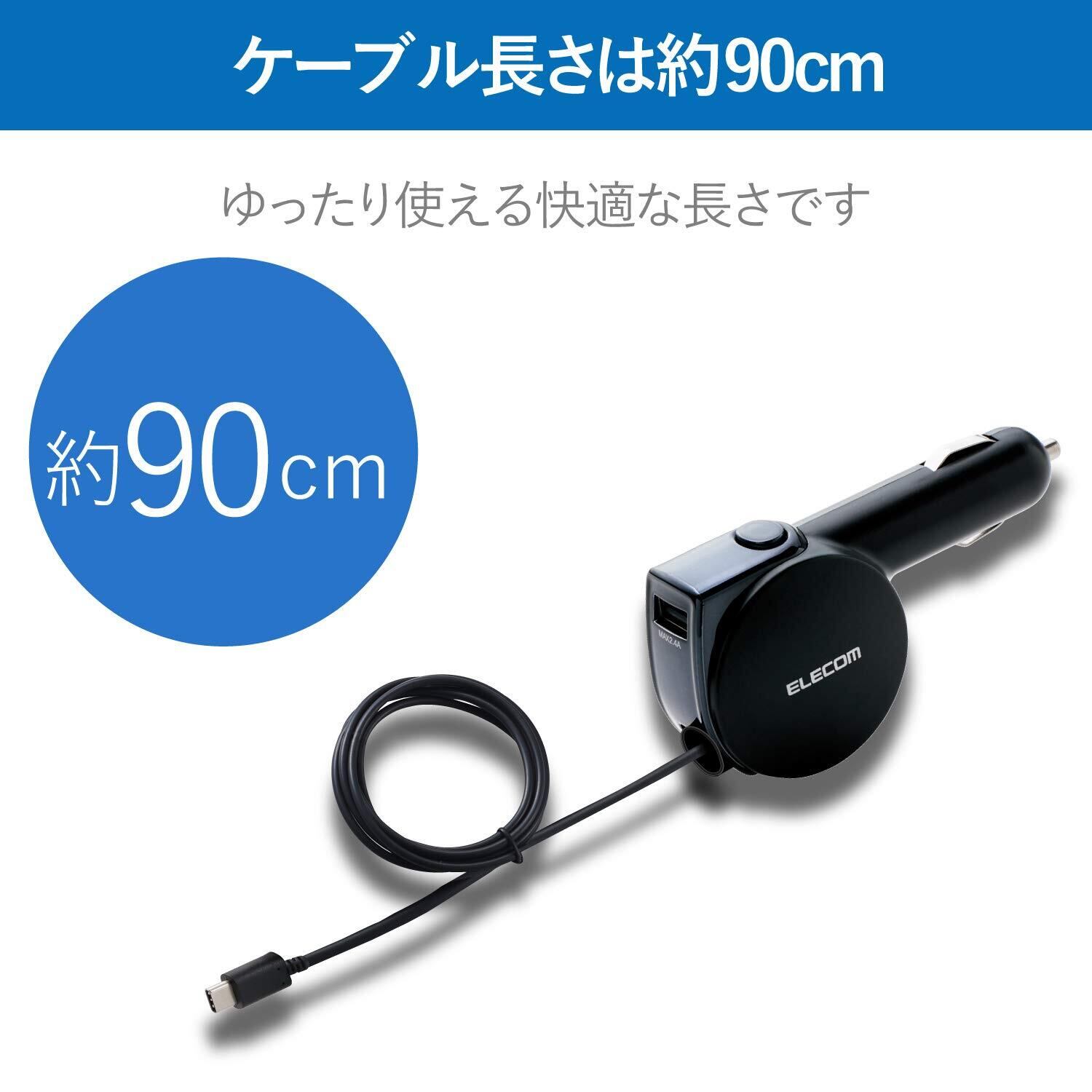 エレコム(ELECOM) シガーチャージャー/Type-C/リール/90cm/5.4A/ブラック