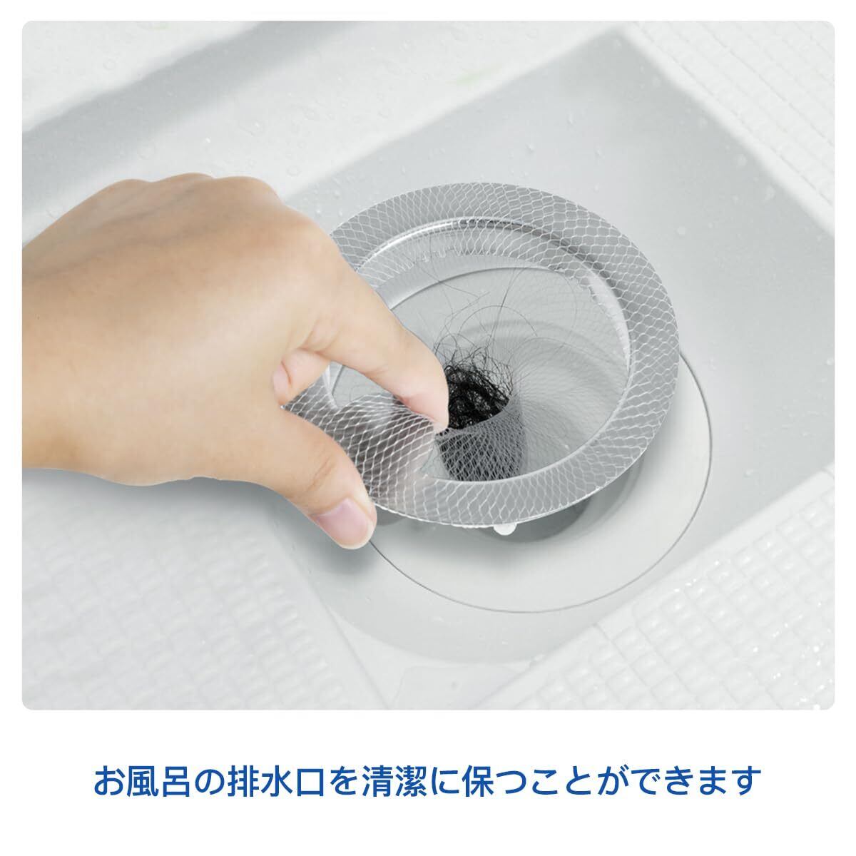 【商品仕様】内径7.7、外径10.2、高さ1.5cmです。 直径8~10cm、高さ1.5cm以上の排水口に適用。パッケージ内容:髪の毛キャッチャーX1個;髪の毛キャッチャーネットX 100枚
