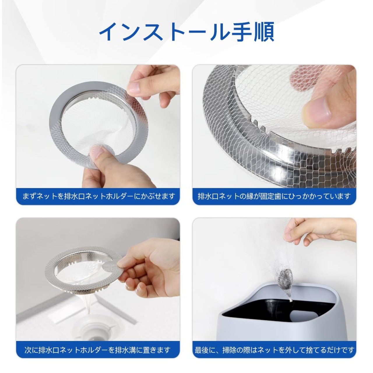 【ステンレス製】ステンレス製で汚れがつきにくく、洗いやすい形状、サッと洗えてお掃除らくらく、水の流れで簡単に浮くこともありません。取っ手がついていて取外しやすいし、底には固定歯がついているので、ネットが引っかかって外れるのを防ぎます。