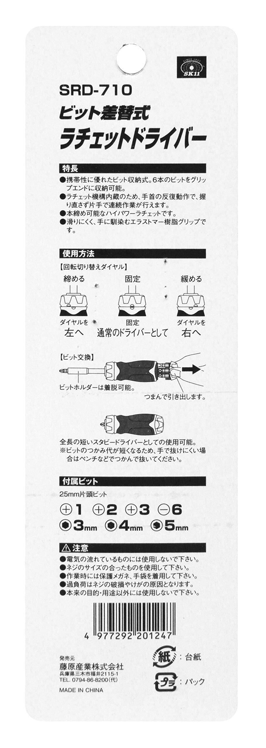 SK11(エスケー11) ビット差替式ラチェットドライバー SRD-710 本締め可能 ビット内蔵式