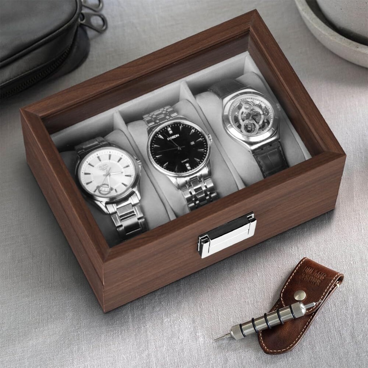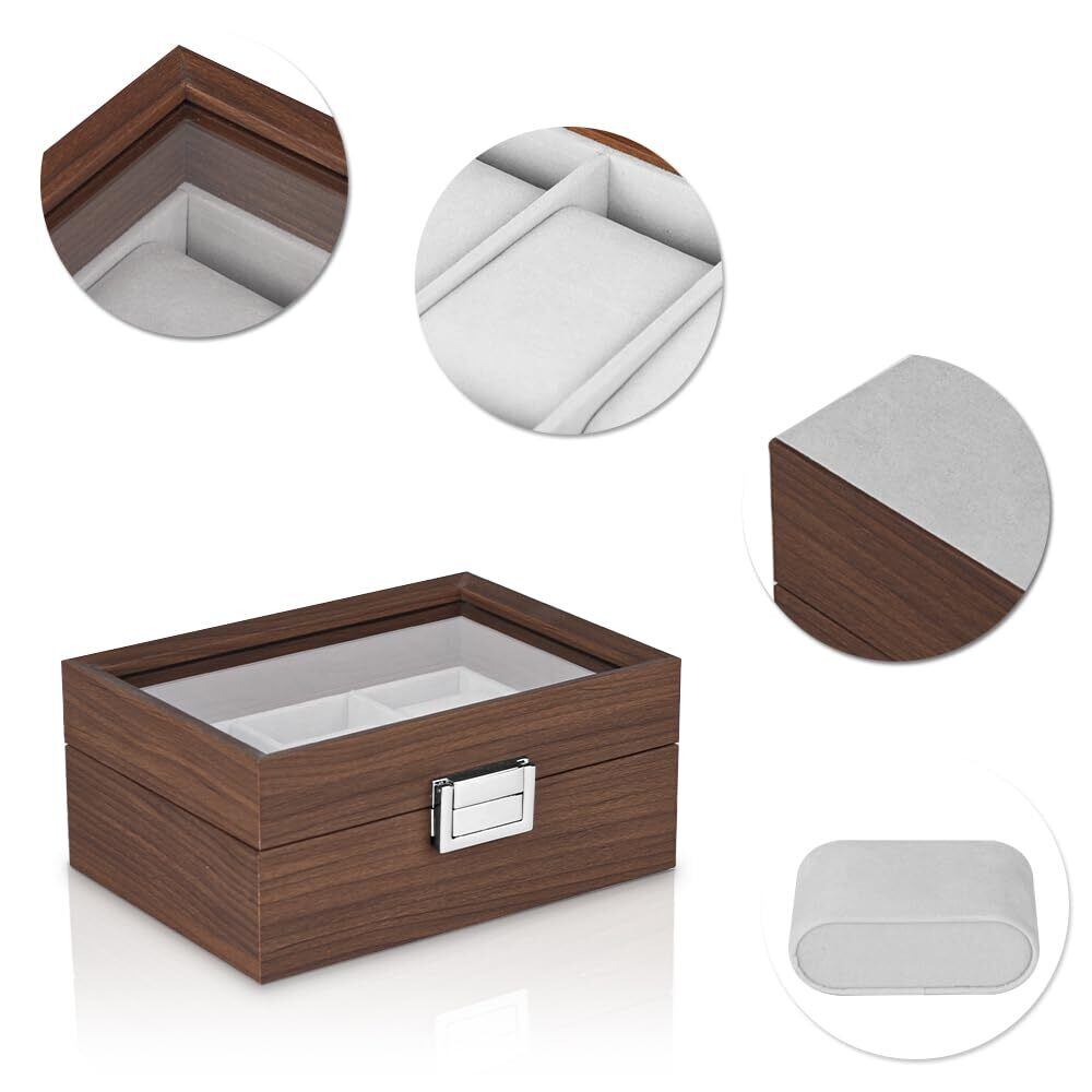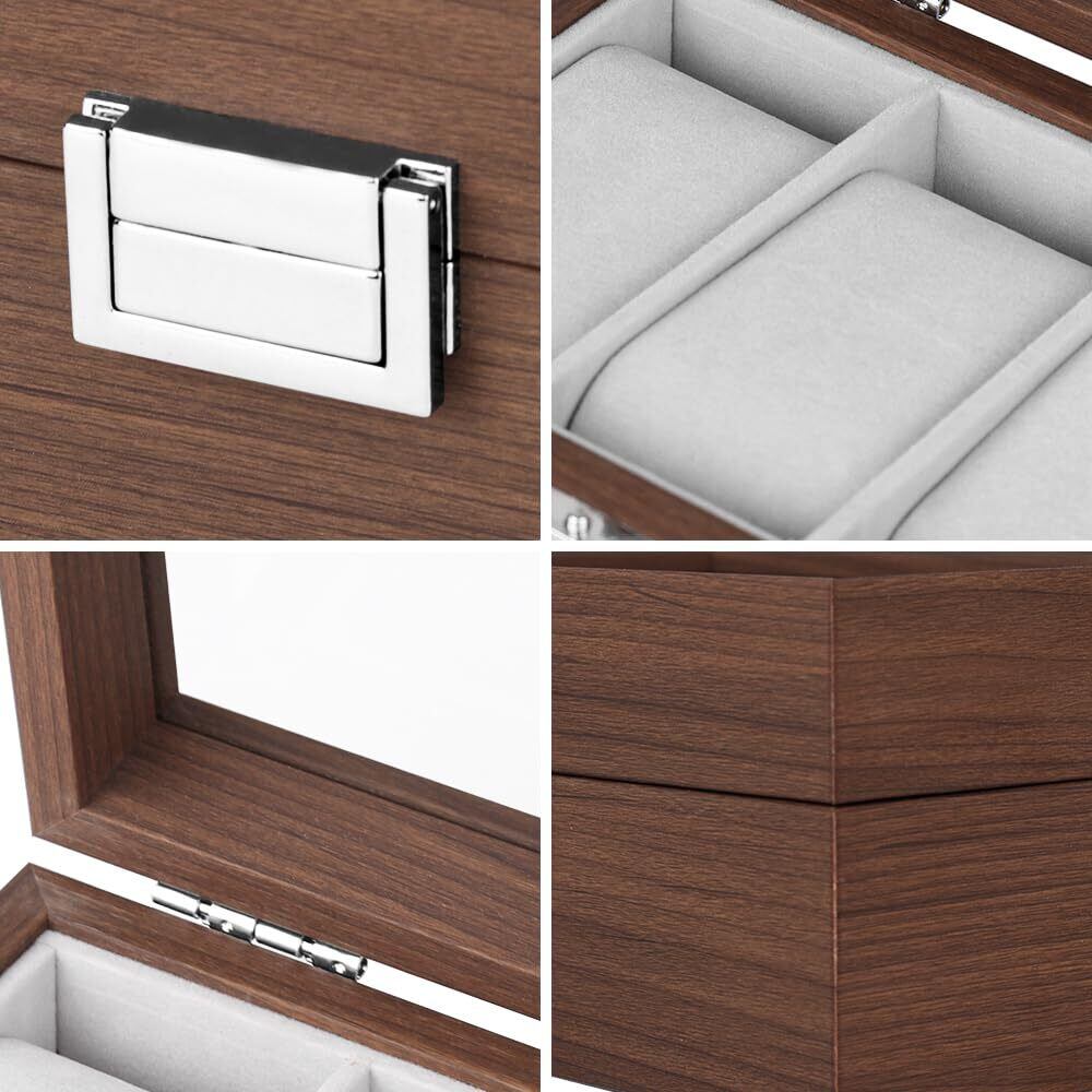 落ち着いた色味の木製収納ケースは大切な腕時計コレクションに相応しい安心感を与えます。シンプルですが、機能的なデザインは深さと直線にこだわり、上品と高級感を与えます。