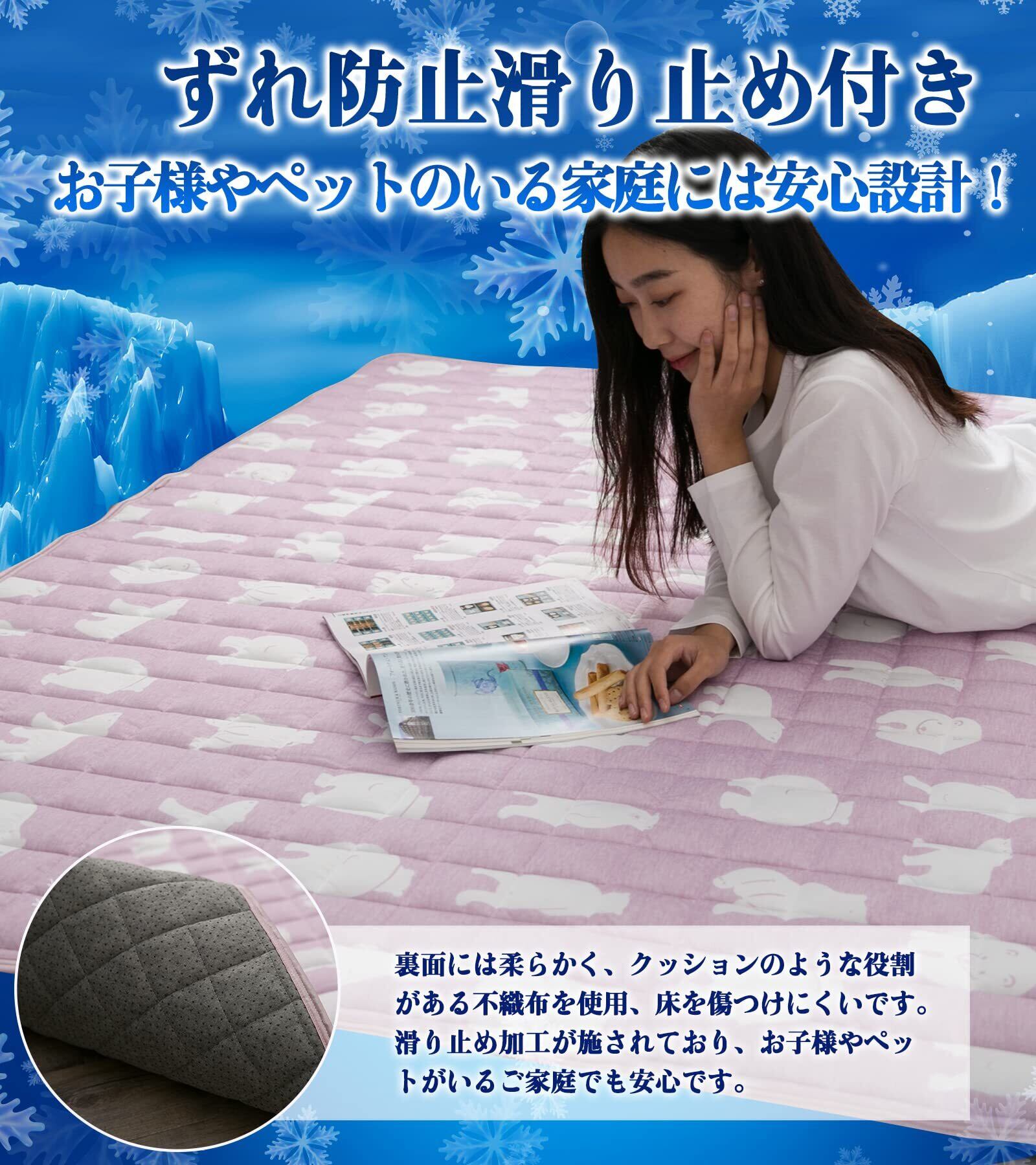 【吸湿速乾&ベタつかず蒸れにくい】当店のひんやりカーペットは汗をかいてもすぐに吸い取り、すぐに乾きます。通気性抜群だからサラッとした肌触りでベトつきません。よりひんやり快適にお過ごし頂けます。