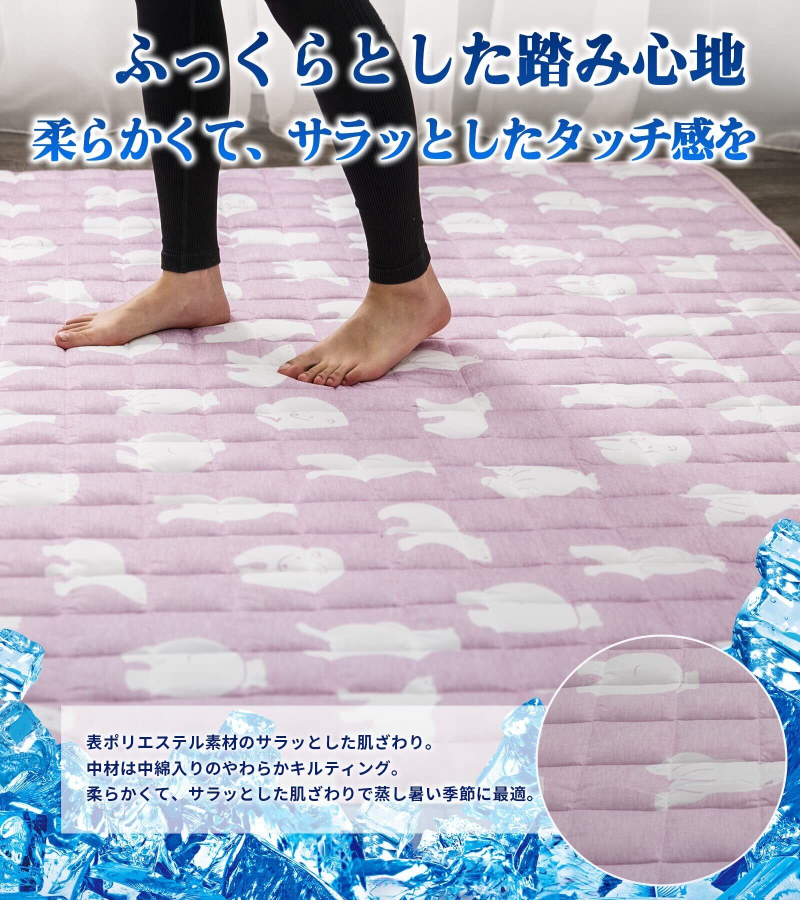 Lemon Bear 冷感 ラグ カーペット 夏用 ひんやり ラグマット キルトラグ 135×185cm(約1.5畳) 洗える ひんやりマット 接触冷感 ラグ 夏 ひんやりラグ 冷感 抗菌防臭 滑り止め付(135×185cm クマ ピンク)