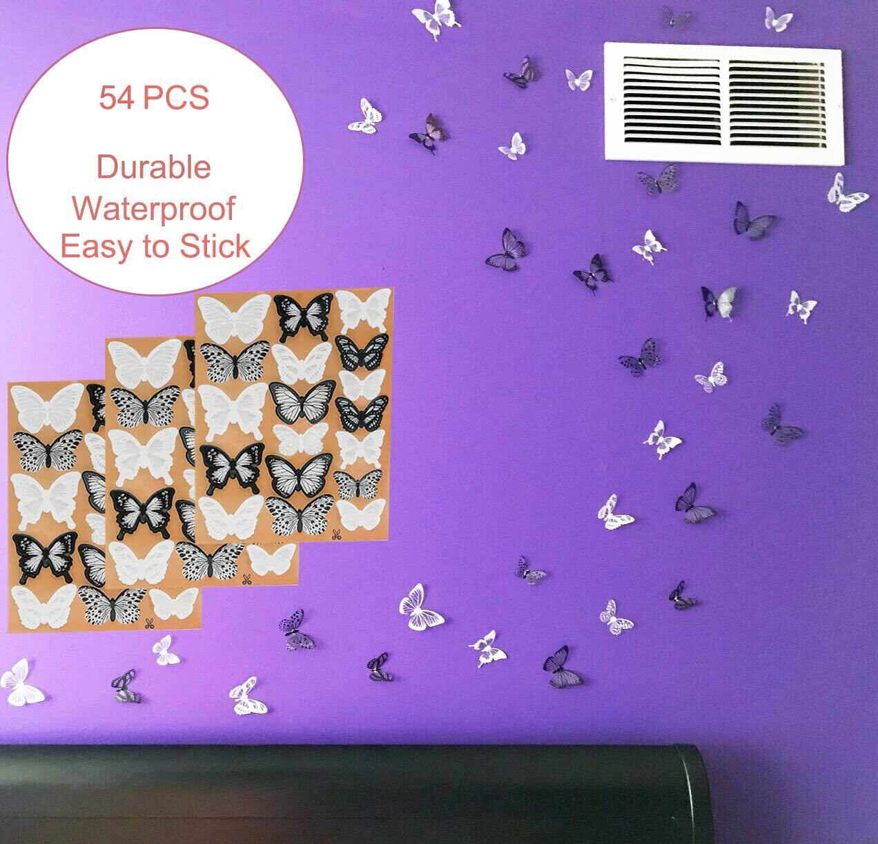 100枚入り 立体3D蝶々 蝶型貼り紙 壁紙シールトンボバタフライウォールステカラフル 部屋や、家庭飾り用 両面テープ付き (ブラック ホワイト 54個)