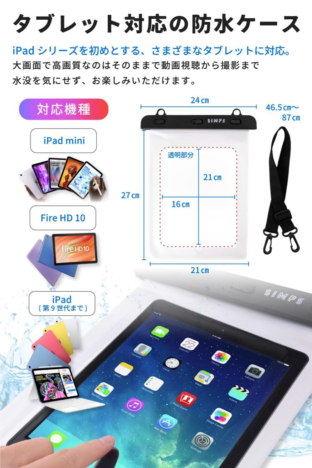 防水ケース iPadなどのタブレットに(7-10.2インチまで対応)[最高水準のIPX8防水(世界最大規模SGS検査機関の認証テスト合格)x綺麗な画面はそのまま(撮影もOK)] [SIMPS]