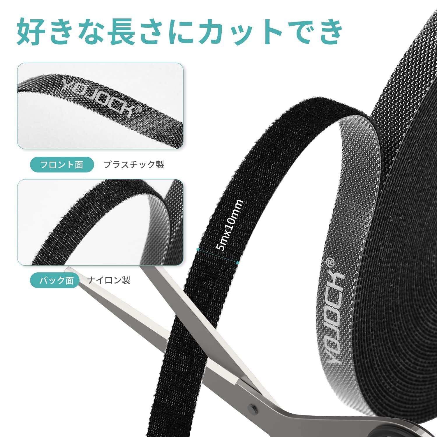 結束バンド YOJOCKケーブル結束バンド 5mx10mm 面ファスナー配線整理 収納 固定 自由にカットケーブルバンドコード ケーブル まとめる 耐熱収納用テープ 両面用 (黒色-5mx10mm)