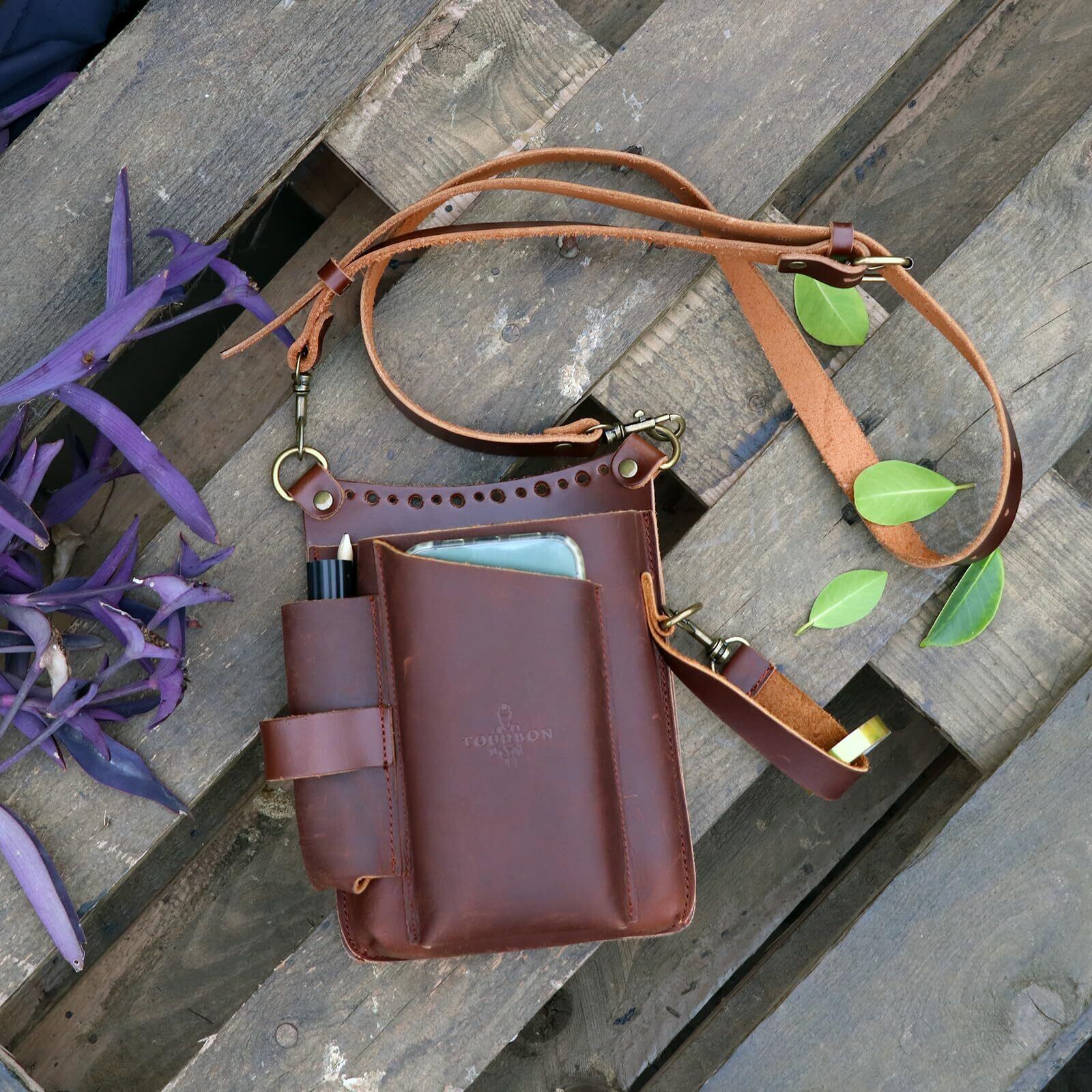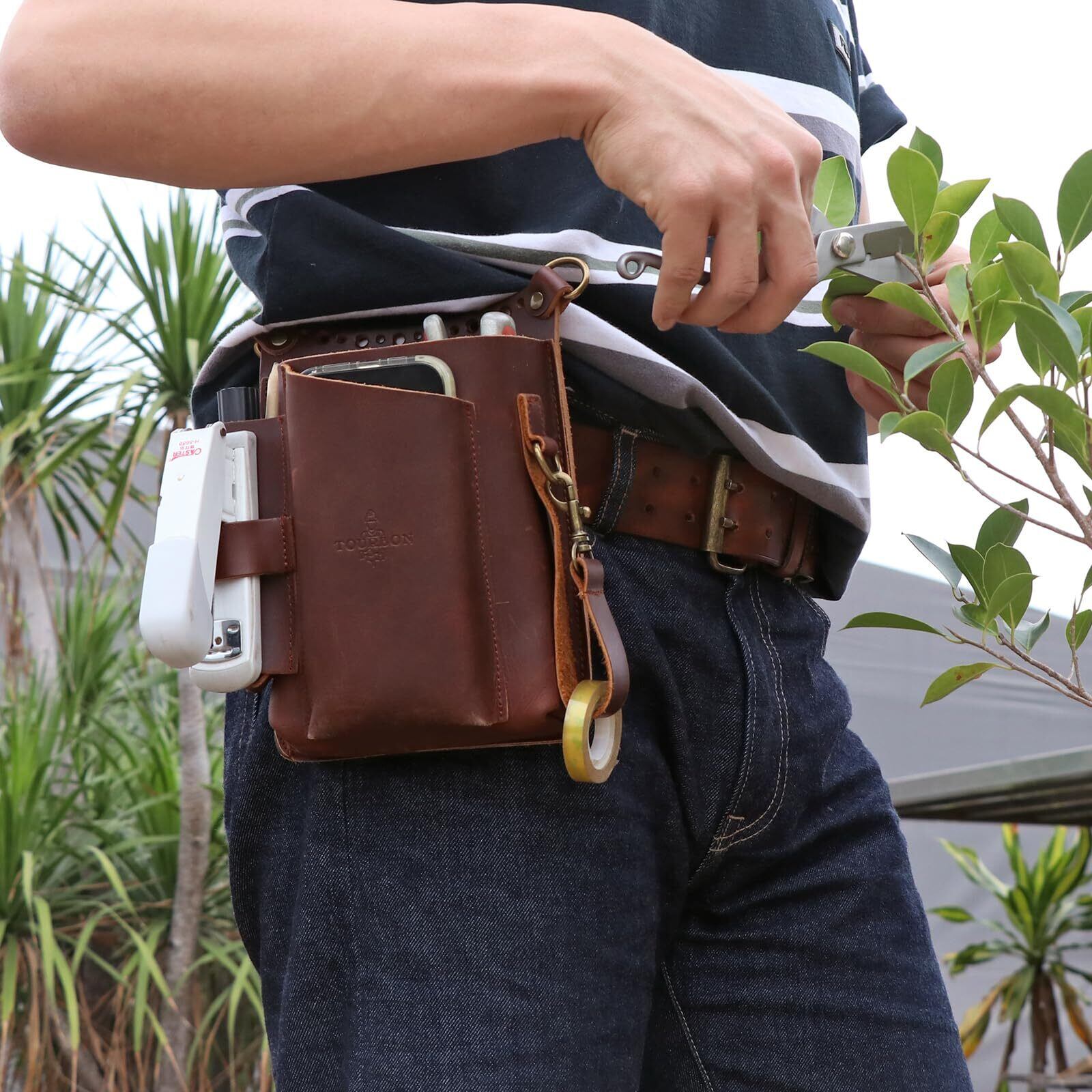 TOURBON ガーデニングポーチ レザー フローリストケース シザーケース バッグ 腰掛けポーチ 園芸 花屋