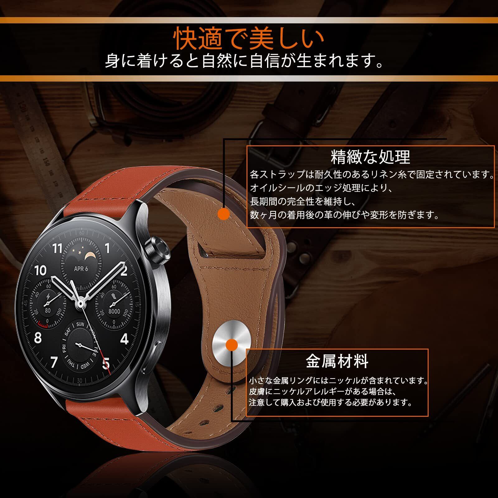 LuFiYa 22mm レザーバンド Xiaomi Redmi Watch 5 Active/Redmi Watch 5 Lite/Watch 2/Watch S3/Watch S1 Pro/Watch S2 対応 本革バンド 交換ベルト 腕時計バンド ビジネス風 柔軟 男女通用 ストラップ Garmin Venu 3/Forerunner 265/255 用 時計バンド (オレンジ)