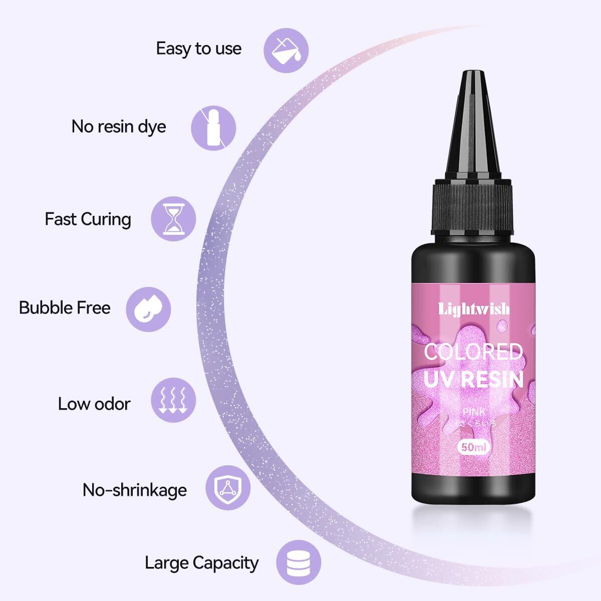 LIGHTWISH カラーレジン液 UV-LED対応 50ml*8色のグリッターカラー 大容量 カラーUVレジン 光沢 急速硬化 ほぼ無臭 手芸 DIY用