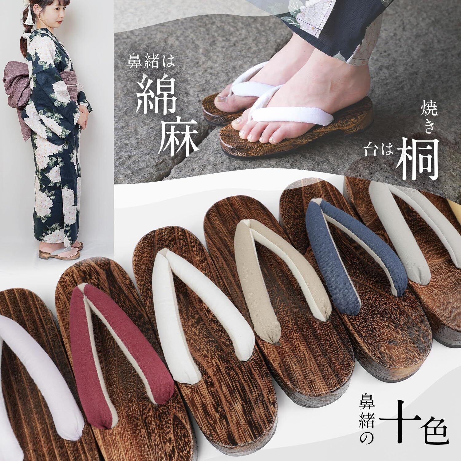 [あめてまり] 下駄 レディース 浴衣 夏 綿麻無地 鼻緒 F寸 浴衣下駄 浴衣用 大人用 桐下駄 女性用 痛くない 太鼻緒 ふわふわ鼻緒 くすみカラー ナチュラル 右近型 ゴム底 EVA 焼桐 天然木 ゲタ | yankees