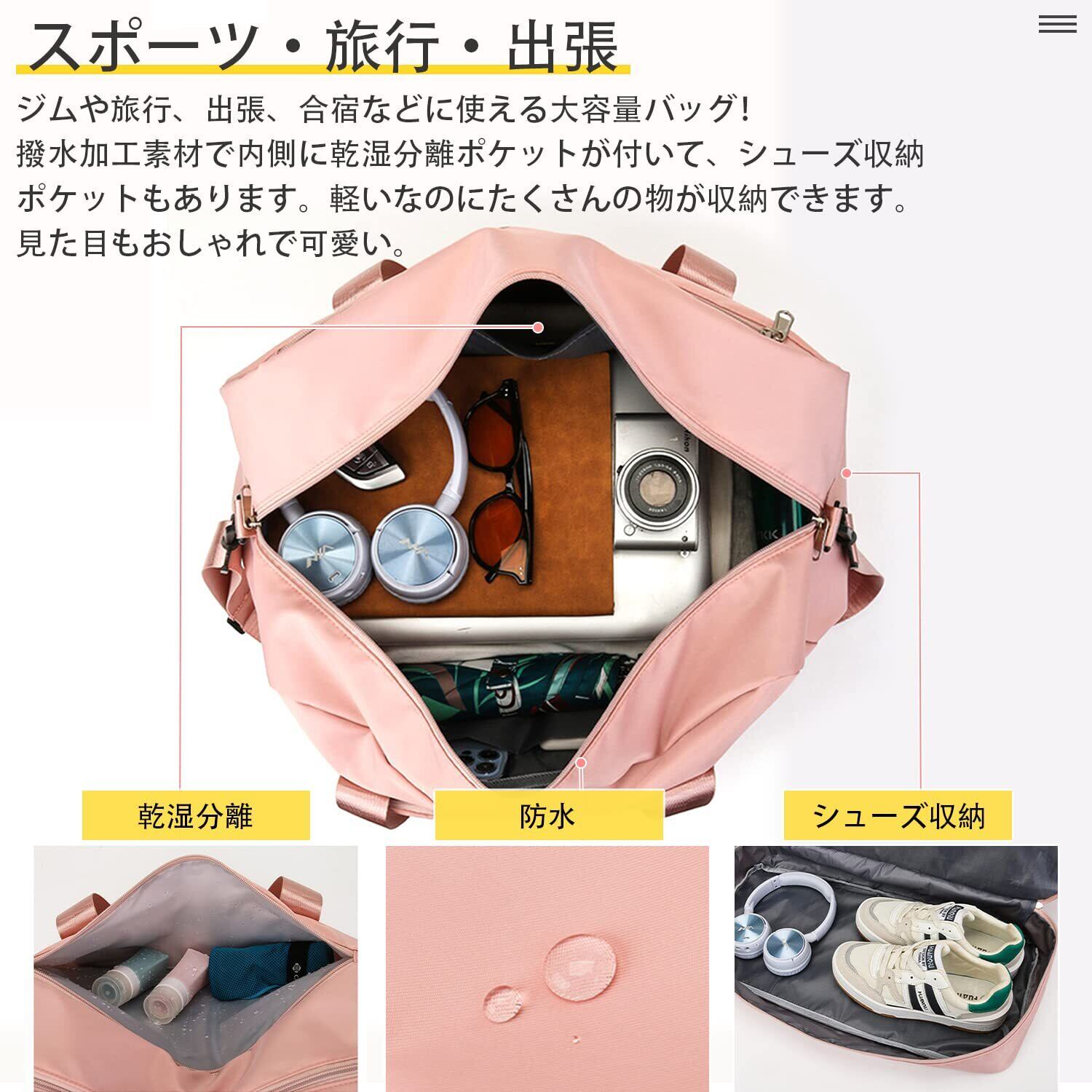 【どんなシーンやライフスタイルにも適したバッグになります】ゴルフ、サッカー、野球、バスケットボール、バレーボール、通勤、屋外、ラグビーなどのスポーツでの試合や練習、スポーツジムでも大活躍!2~3日の小旅行や出張などにも最適で、機内持ち込みOK。【洗えます】耐久性が高く、撥水効果のあるオックスフォード生地を採用しているので急な雨でも安心。生地は上品な光沢があり、傷もつきにくく、シワもできにくい。汚れた場合は水で手洗いが可能です。(洗濯機を使用して洗わないでください)