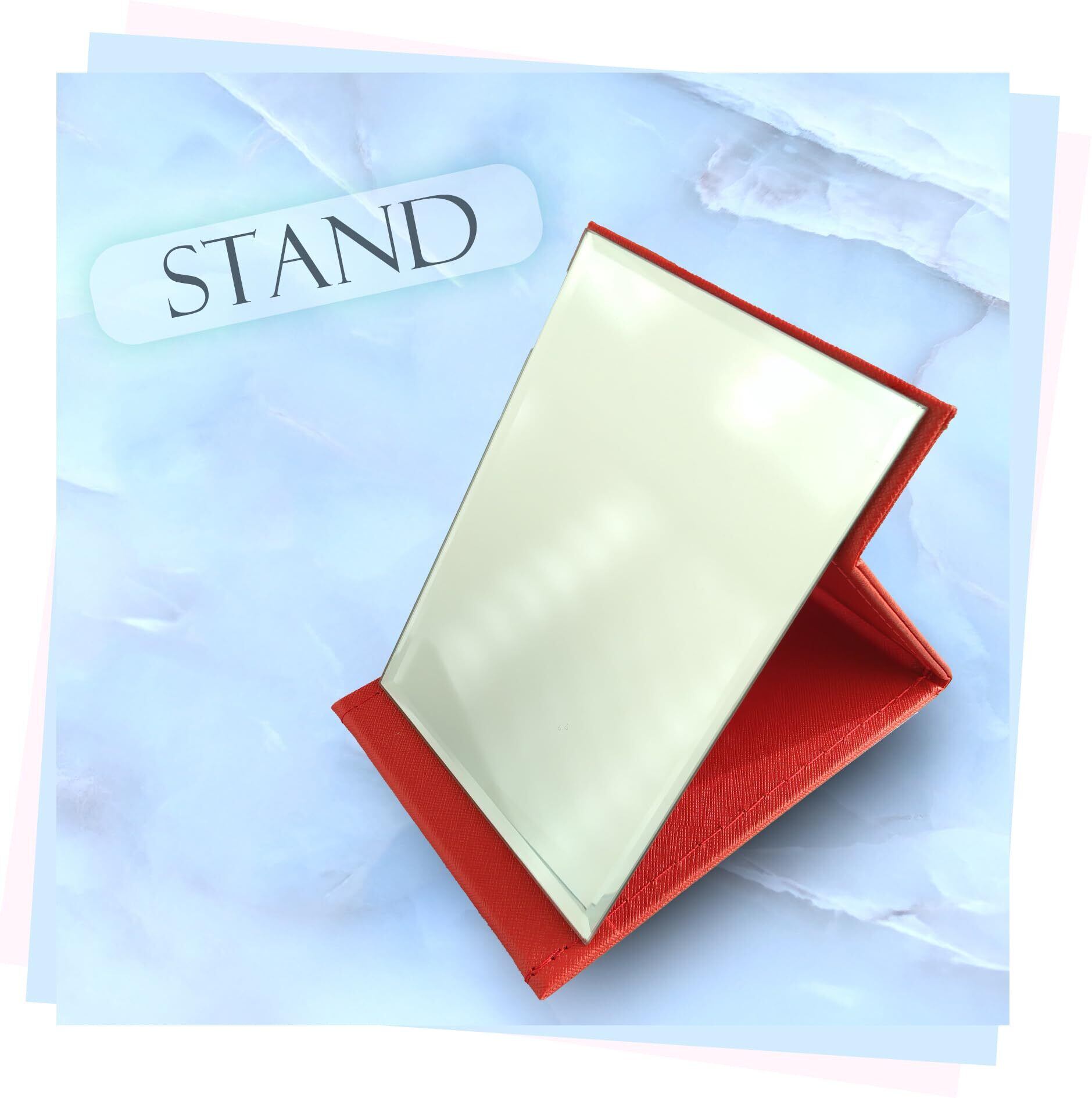 富士スカイ 鏡 卓上 手鏡 折りたたみ カバー材質に自信アリ! Lサイズ(25.7×18.0cm) レッド