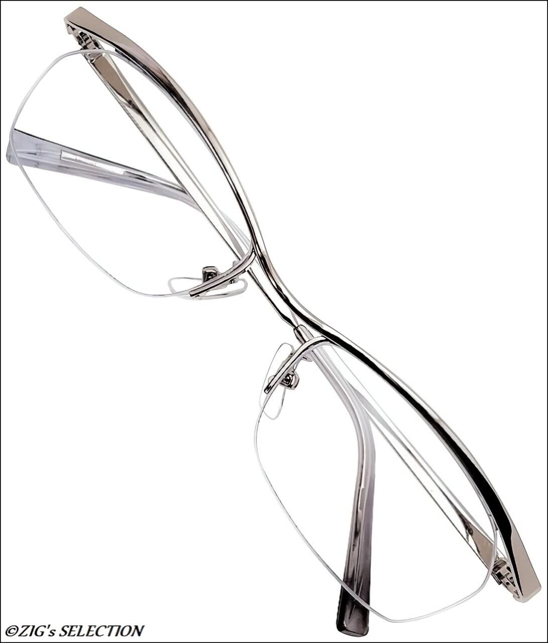 [伊達メガネ] [ZIGs] お洒落に目を守る 紫外線 飛沫 花粉 イメチェン サングラス UVカット クリア メタル ハーフリム メンズ レディース (gldm00)