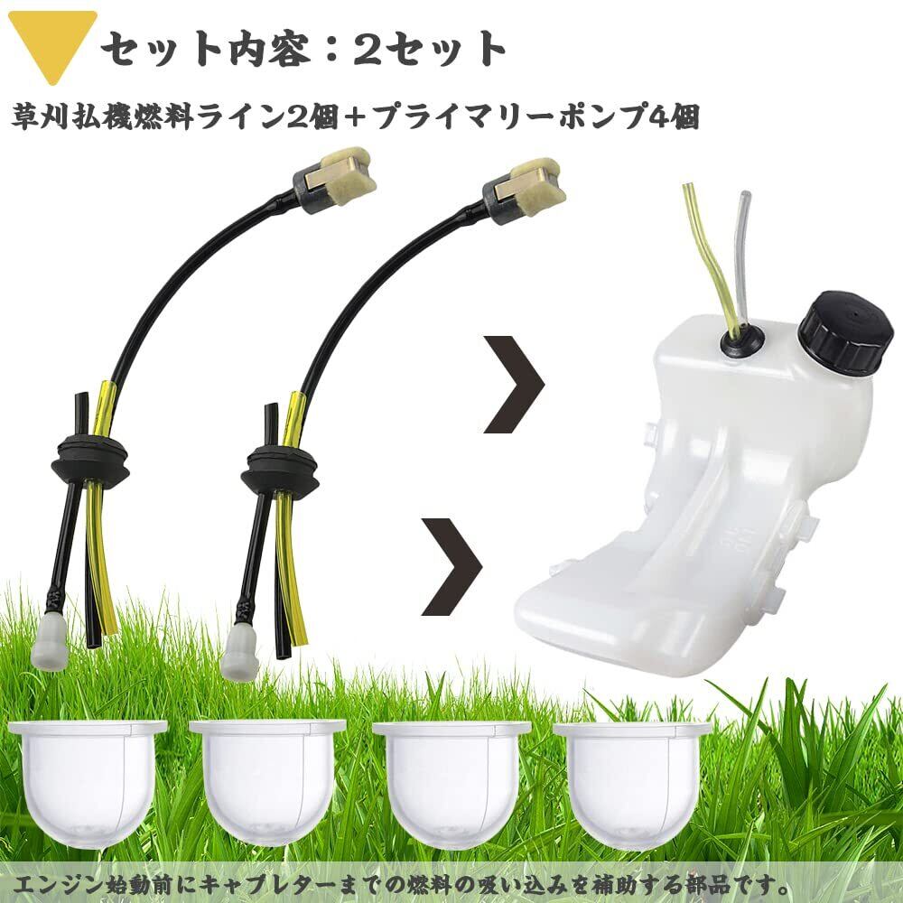 草刈機 刈払機 燃料ライン用 燃料ライン交換 2セット 芝刈り機部品 燃料ホースセット 交換用部品 取り付けが簡単 柔軟性 防錆性 草刈り機 部品 草刈機部品パーツ (燃料ライン2個+プライマリーポンプ4個)