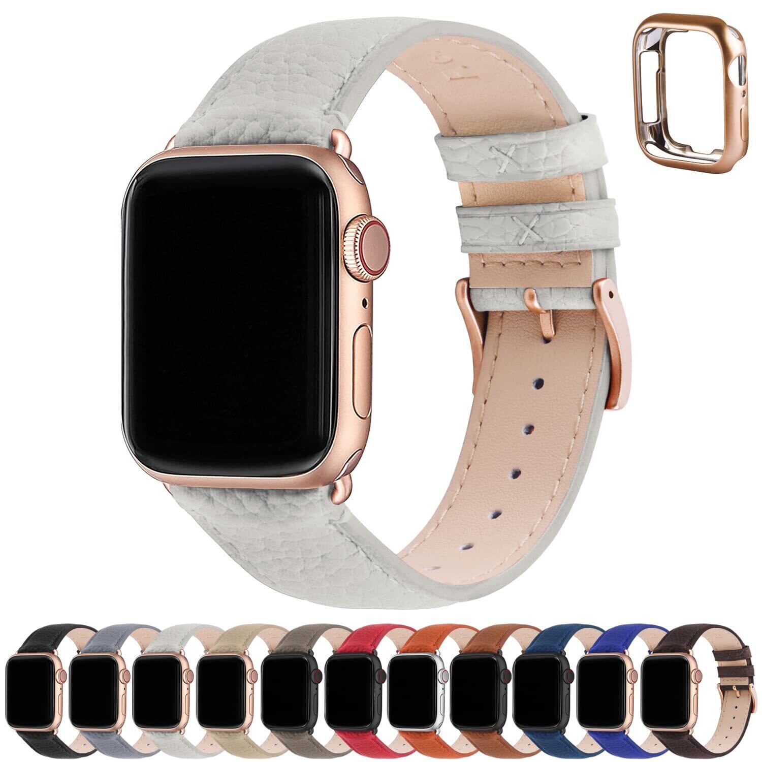 アップルウォッチ バンド 38mm 40mm 41mm コンパチブルApple Watch バンド レザー アップルウォッチベルト 本革 柔らかい 可愛い おしゃれ 人気 保護ケース付き レディース メンズ iWatch SE/SE2/Series9/8/7/6/5/4/3/2/1に対応(38mm 40mm 41mm、ミルクホワイト+ローズゴールドバックル) | yankees