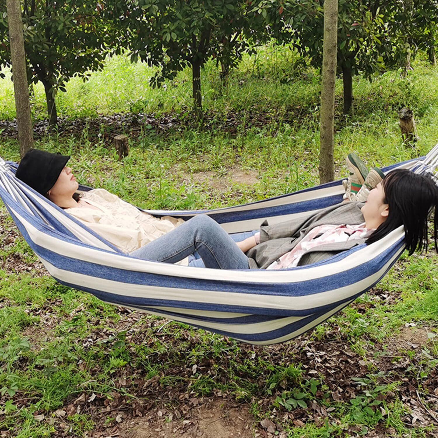 VicBre ハンモック ダブル 横転防止 ムーンバー付き 超広い 耐重荷300kg キャンプ 公園 ピクニック 2人用 肌触りよい 持ち運び簡単(ブルー)