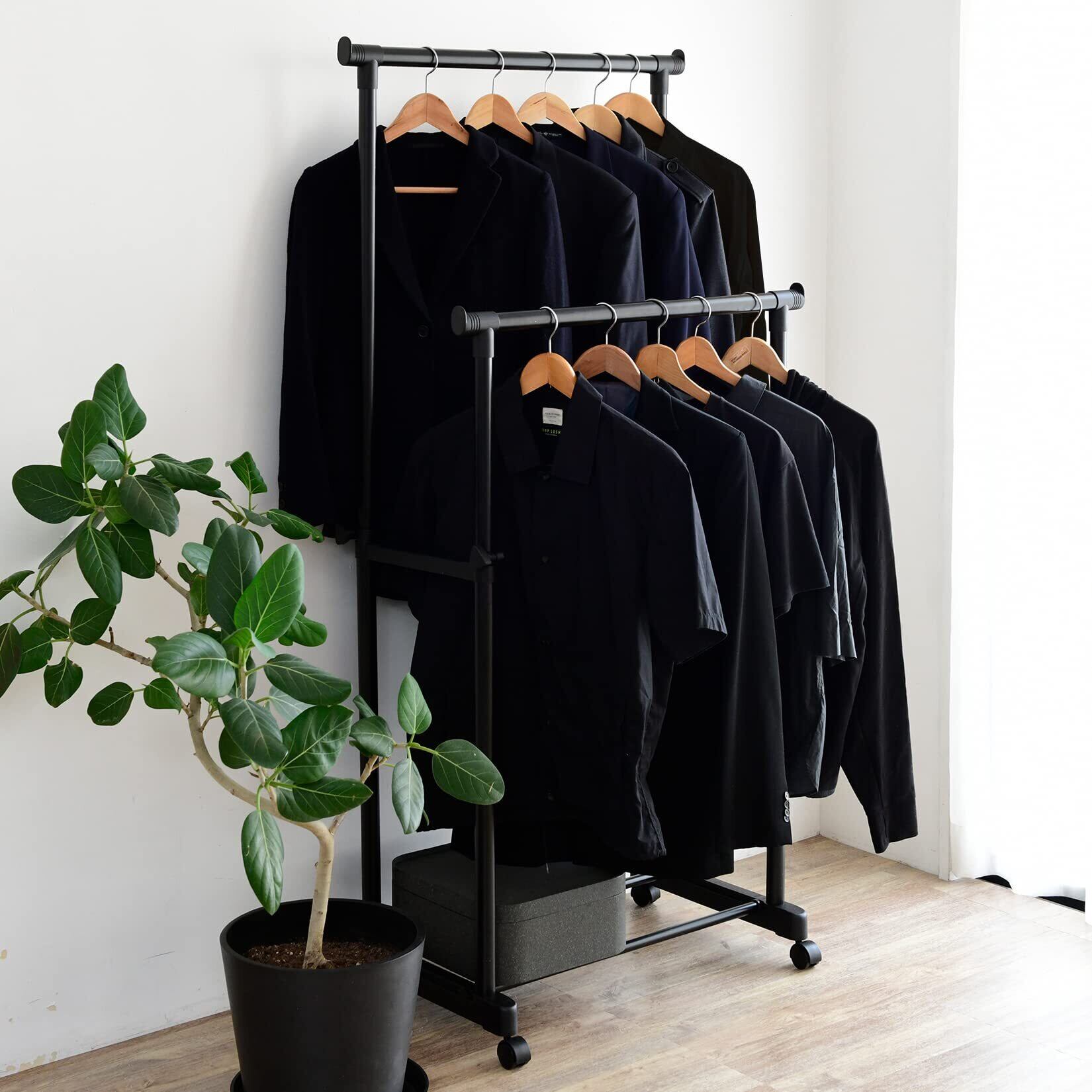 【シンプルだからあらゆる場面で活躍】一人暮らしの衣類収納、玄関のコートハンガー、会社の更衣室などの業務用まで、幅広くお使いいただけます。前後にバーのあるダブルタイプなので、よく使う物は手前に、季節外のものは奥に、などの使い方もできます。シングルと同じサイズながら2倍の収納力が魅力です。