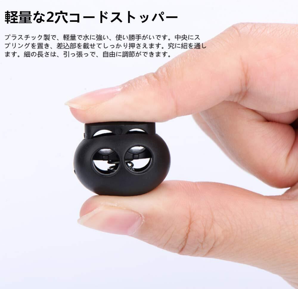 ゴム紐 スプリングコードストッパー 2つ穴 2本紐用 丸型 10セット コードロック 紐止め 10個 2.8mm×10mゴムロープ交換用 補修用 衣類 リュックサック 運動服など ブラック | yankees