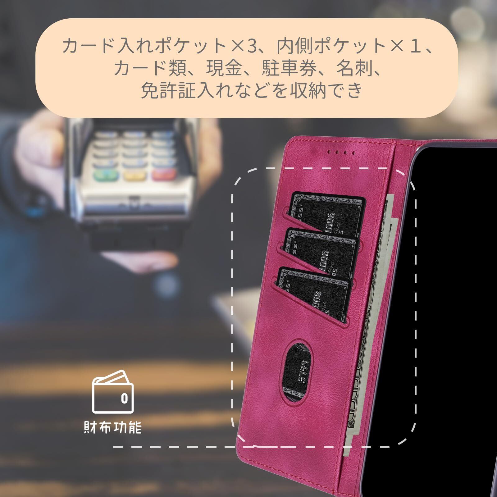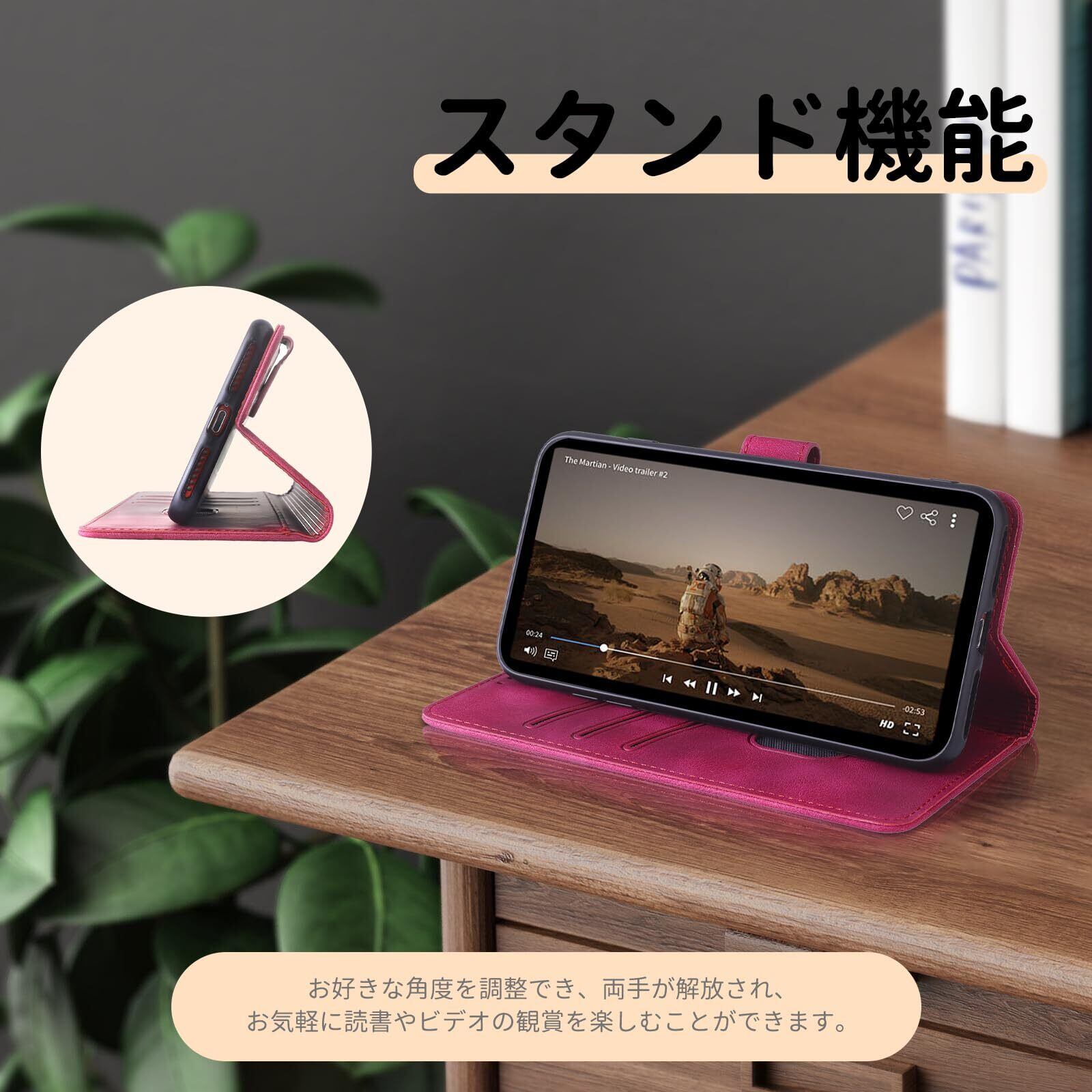 【カード収納とスタンド機能】このアロウズf51b ケースは動画視聴に便利なスタンド機能が付き、横向いて斜めに立てて、お好きな角度を調整でき、両手が解放され、お気軽に読書やビデオの観賞を楽しむことができます。内側には3つのカード入れとフリーポケットがつき、名刺や定期券の収納に優れている携帯カバーです。