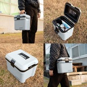 材質:ふた・本体・ハンドル・ベルト/ポリプロピレン、ふたパッキン/発泡ポリエチレン、断熱材/発泡スチロール、耐熱温度/80度、耐冷温度/-10度、原産国:日本