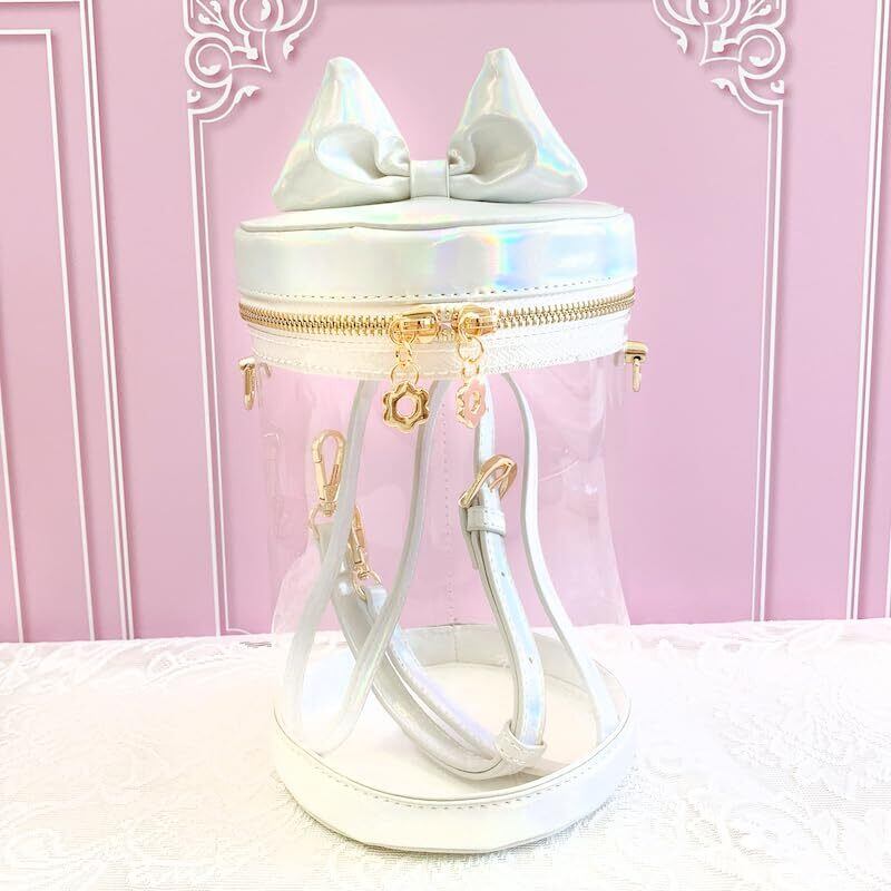 [ジートリガー] 猫耳風リボン付きぬいバッグ ぬいポーチ 収納 見せバッグ ショルダーバッグ イベント クリア 透明 円筒 大き目