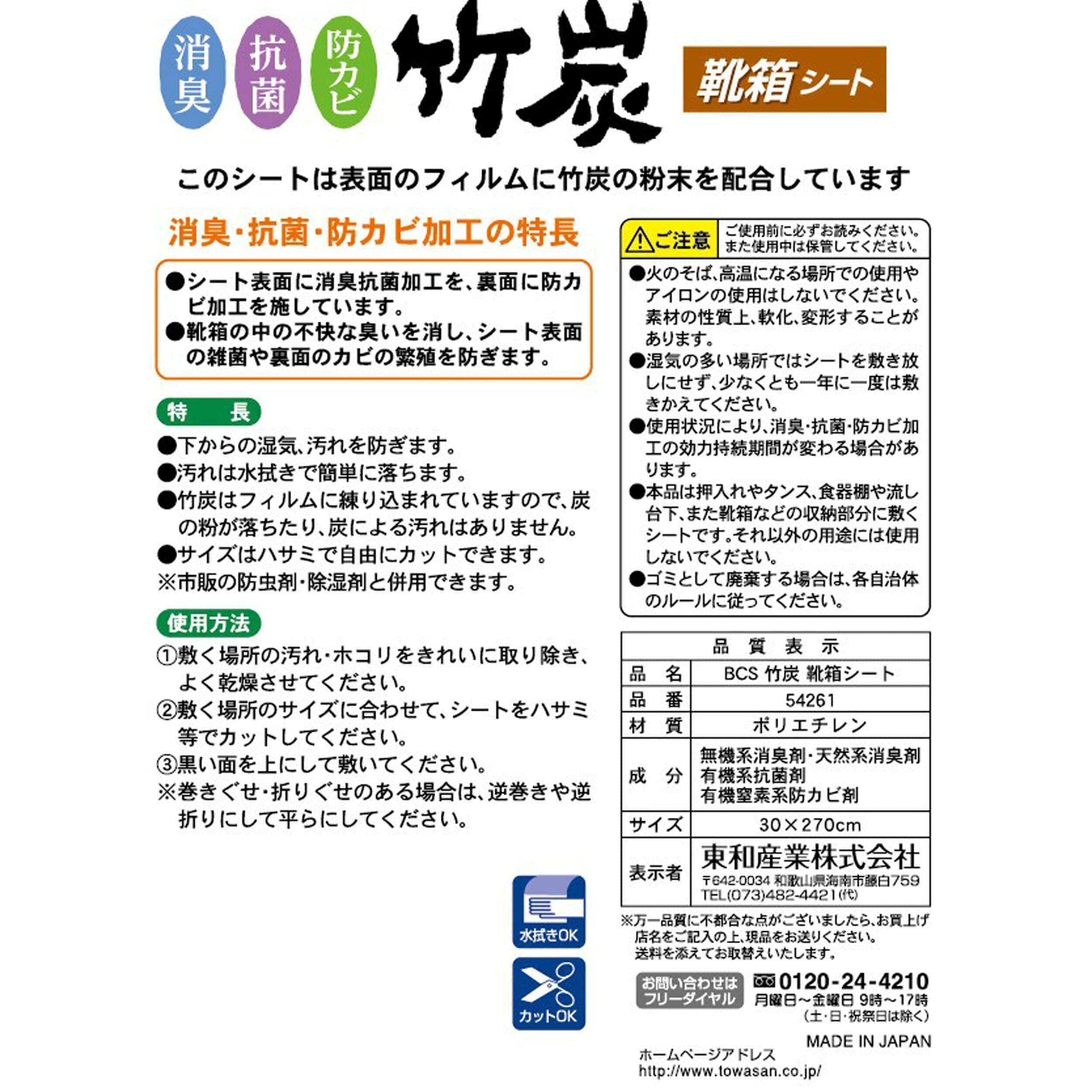 東和産業 靴箱シート BCS 竹炭靴箱シート 日本製 ブラック 約30×270cm 2個セット 54261