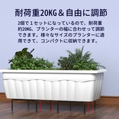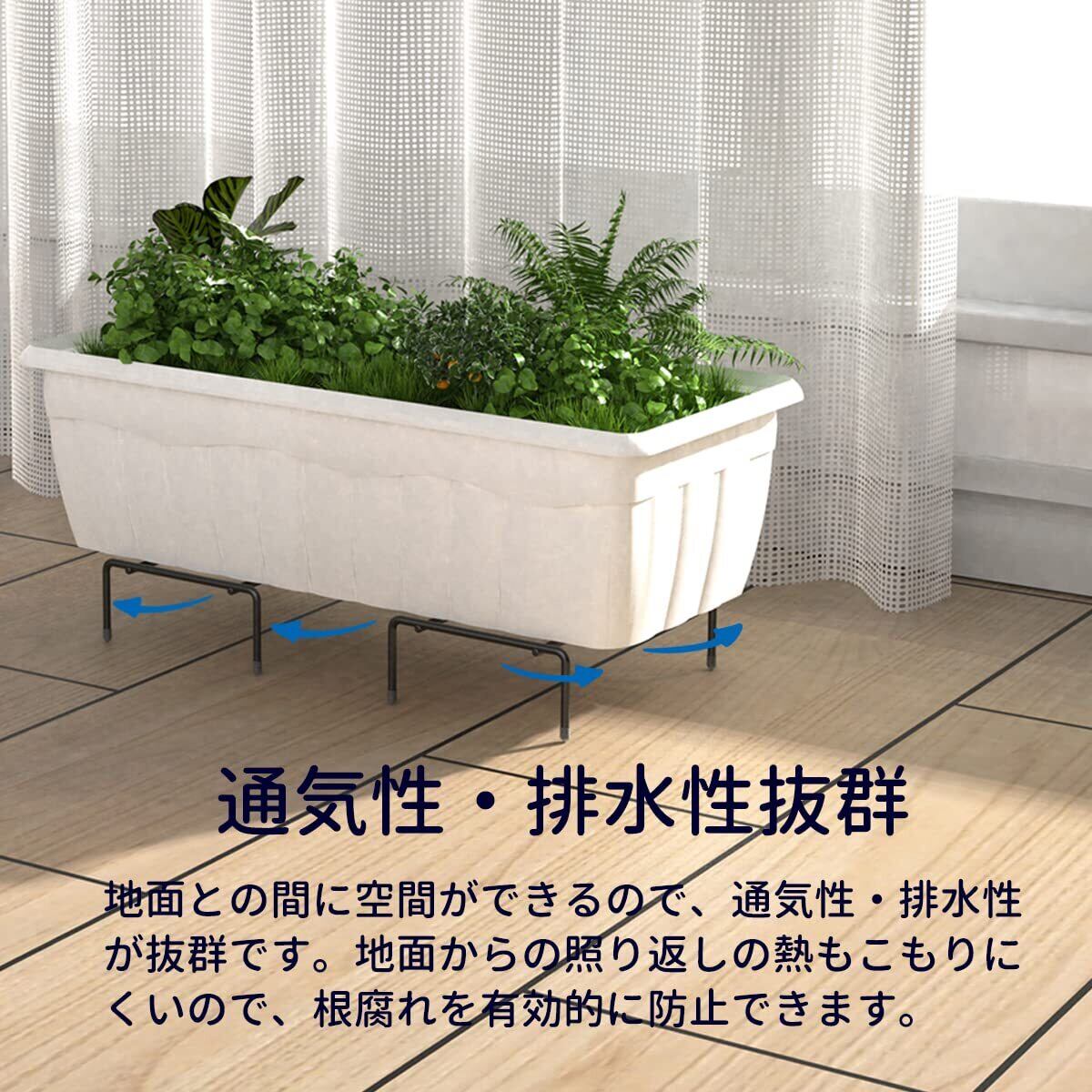 「高温対策」:夏が来ると天気がすごく暑くなります。プランターをプランタースタンドに置いたら、地面との間に空間をつくることができるので、通気性や排水性が良くで、プランターの根腐れ防止します。