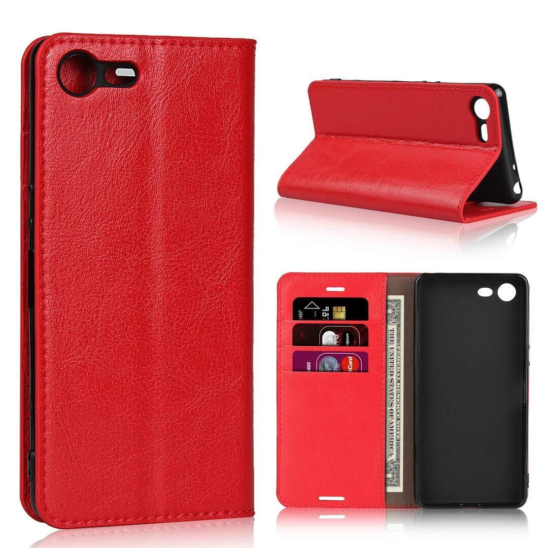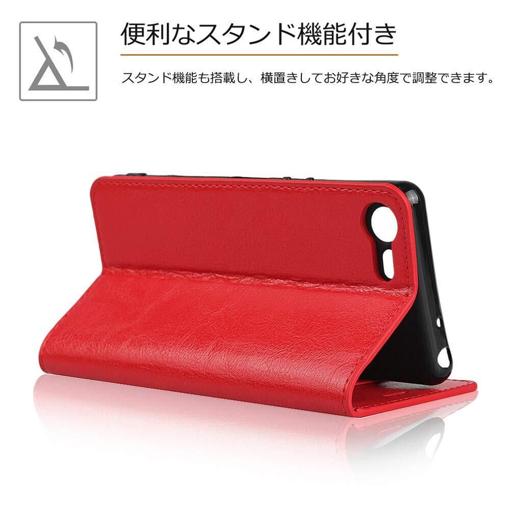 SKIASE Xperia Ace SO-02L ケース 手帳型 本革 SO-02L カバー マグネット無し 落ち着い色 シンプルデザイン レトロ シンプル カードポケット スタンド機能 レッド