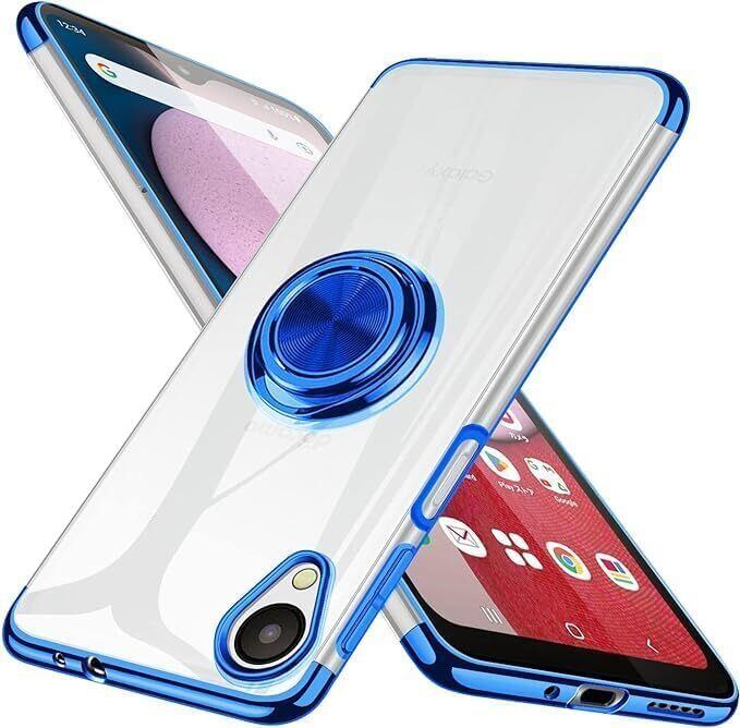 [Kawasina] Galaxy A23 5G ケース リング SCG18 ケース リング付き SC-56C 透明 軽量 薄型 サムスン ギャラクシー A23 ケース ソフトメッキ加工 取り出し易い 背面クリア (ブルー)