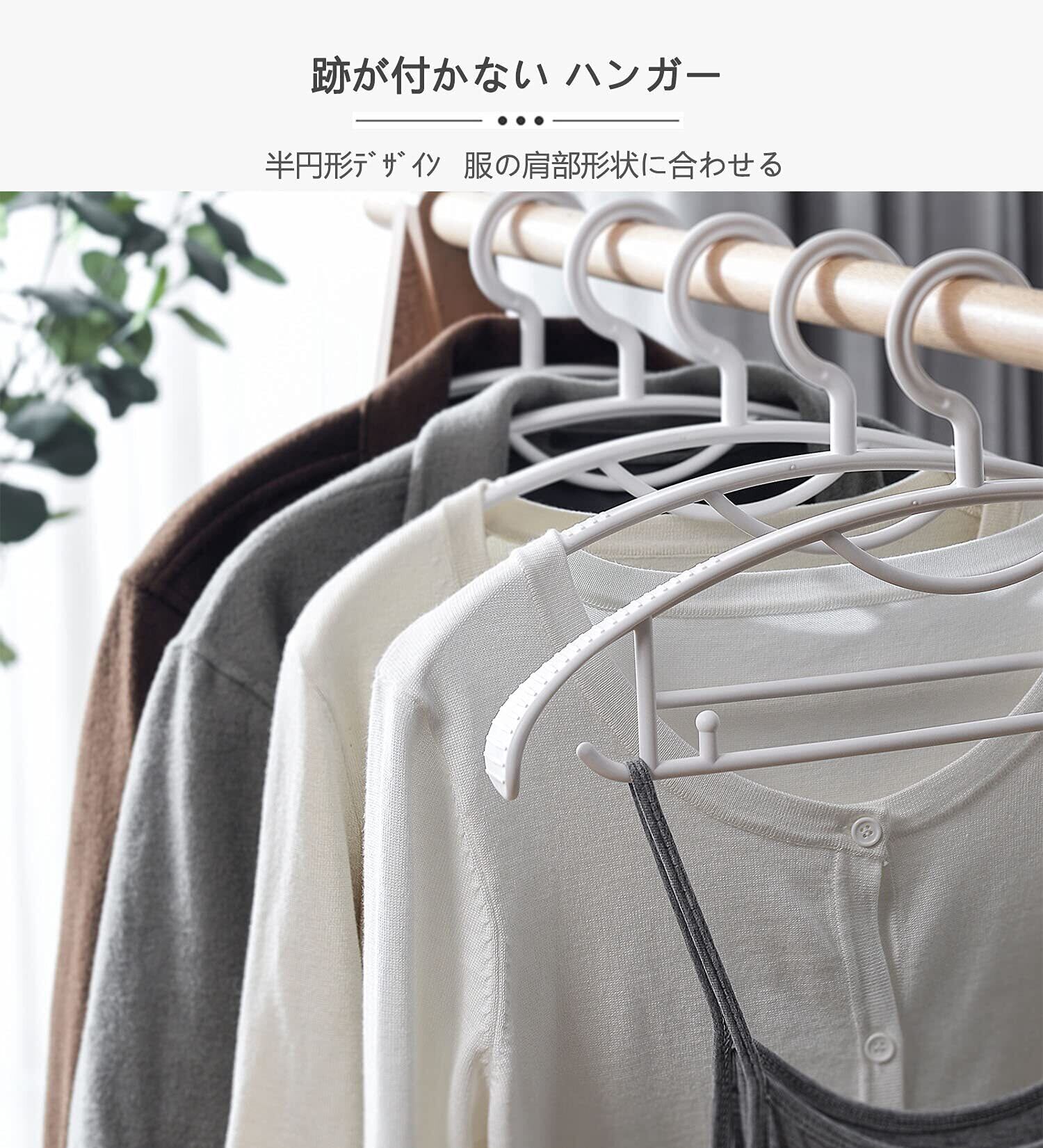 【高品質・丈夫・長持ち】ハンガーは高品質の環境にいいABS樹脂+PP(ポリプロピレン)で作られて、変形にくい、変な匂いがしません。丈夫で長持ちする同時に優れた柔軟性があります、力を入れても、簡単に折れません。