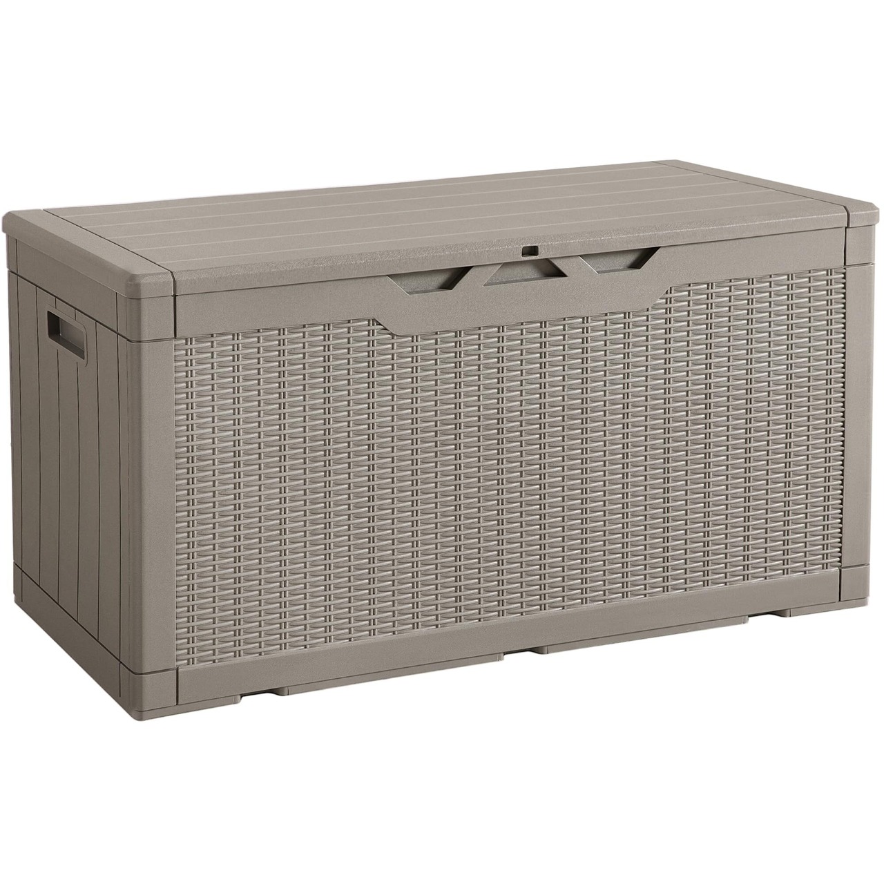 HOMECO 物置 収納庫 378L 大容量 倉庫 屋外収納庫 ベンチストッカー ベランダ収納 アウトドア収納 おしゃれ 幅123*奥行57*高さ62cm 茶色