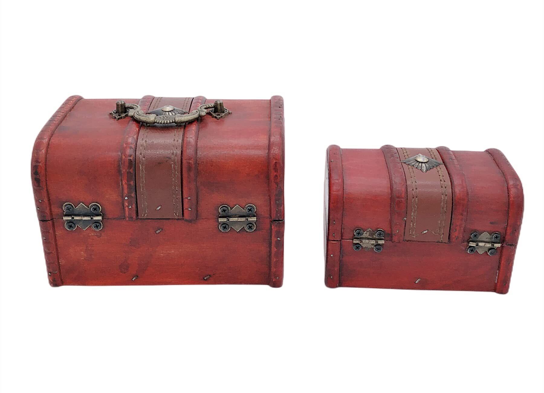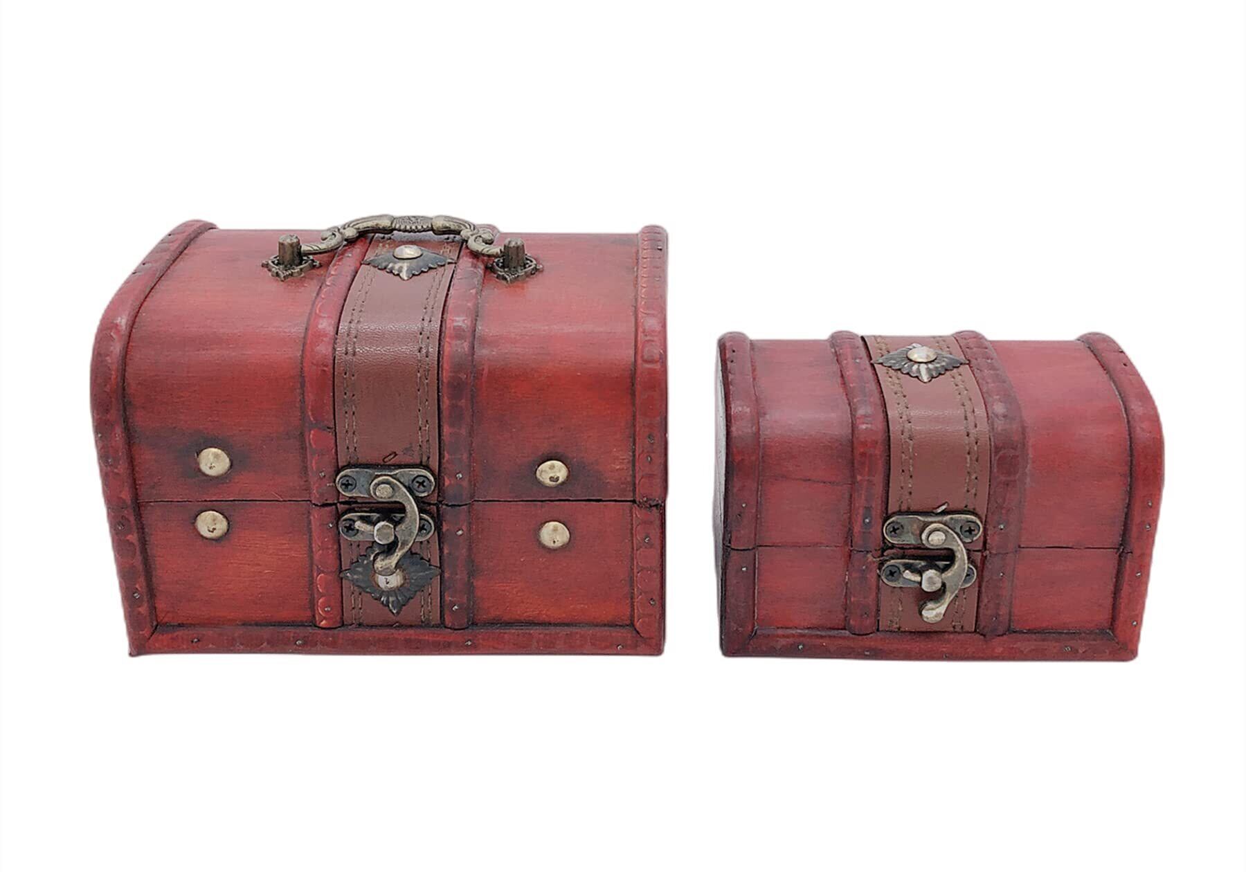 Ansimple アンティーク調 宝箱 木製ボックス ケース 木箱 海賊宝箱 収納箱 小物入れ アクセサリー入れ 宝物入れ インテリア 雑貨 大小2個セット