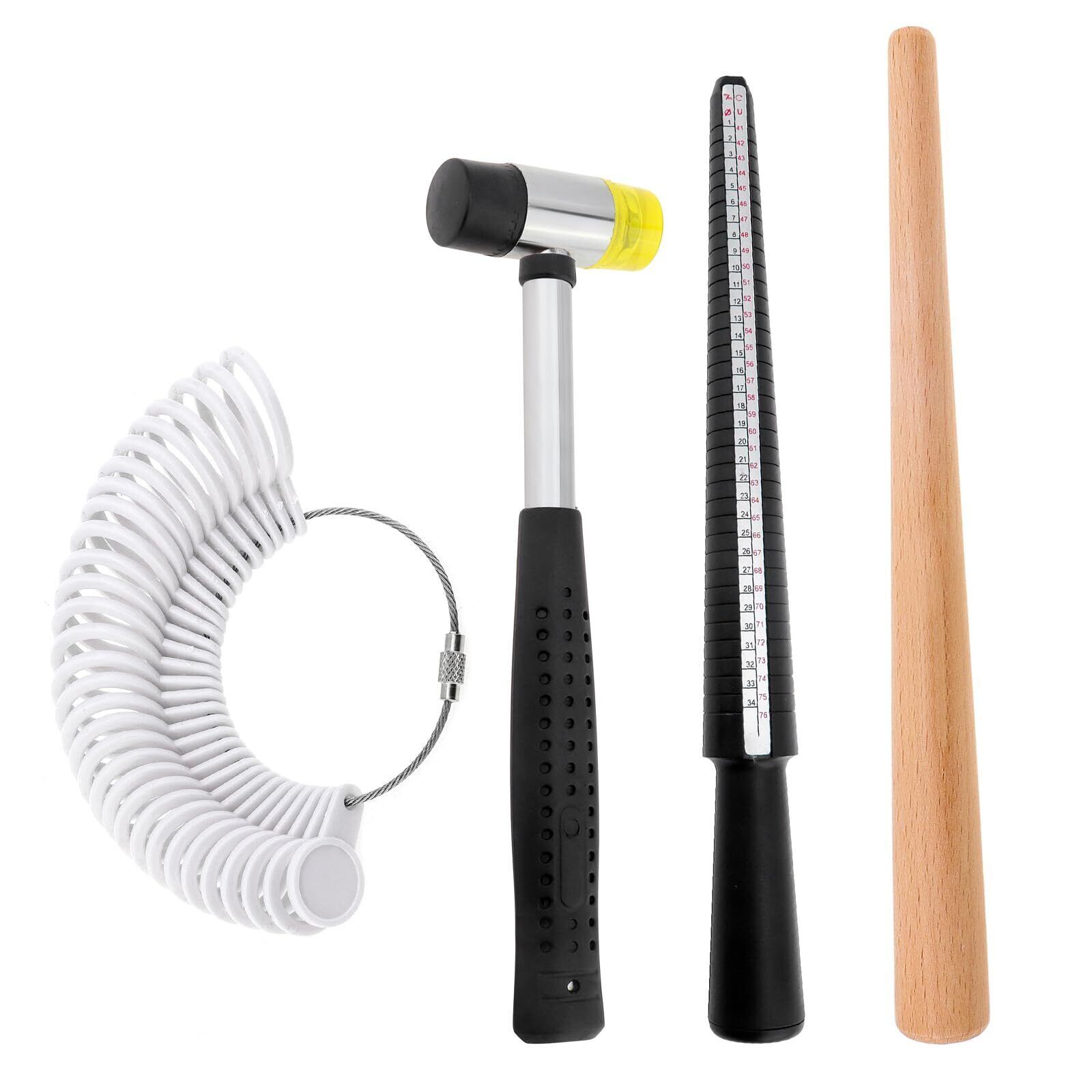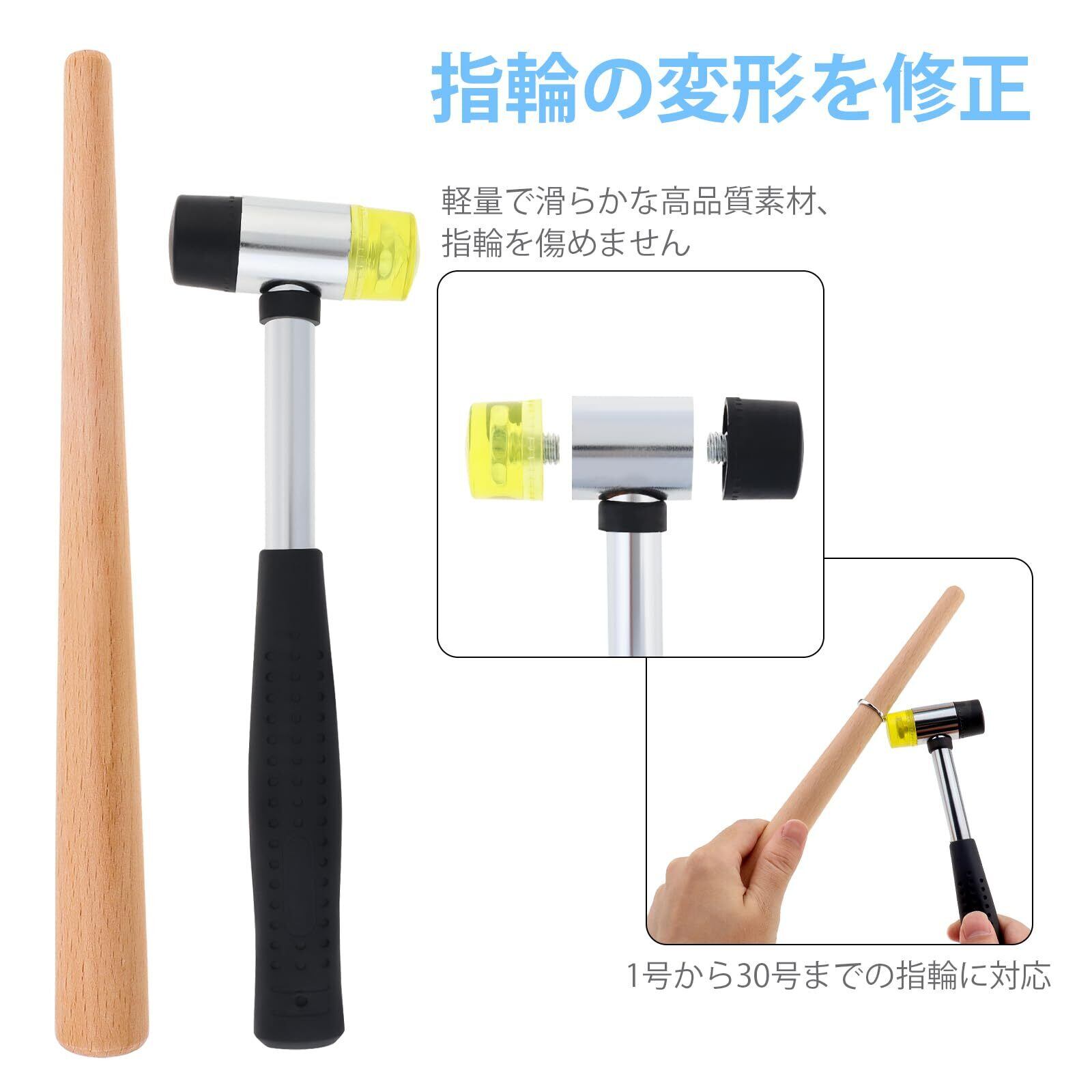 【パッケージ】1 x 指輪サイズ棒、1 x 日本標準規格リングゲージ、1 x 木製棒、1 x ハンマー。